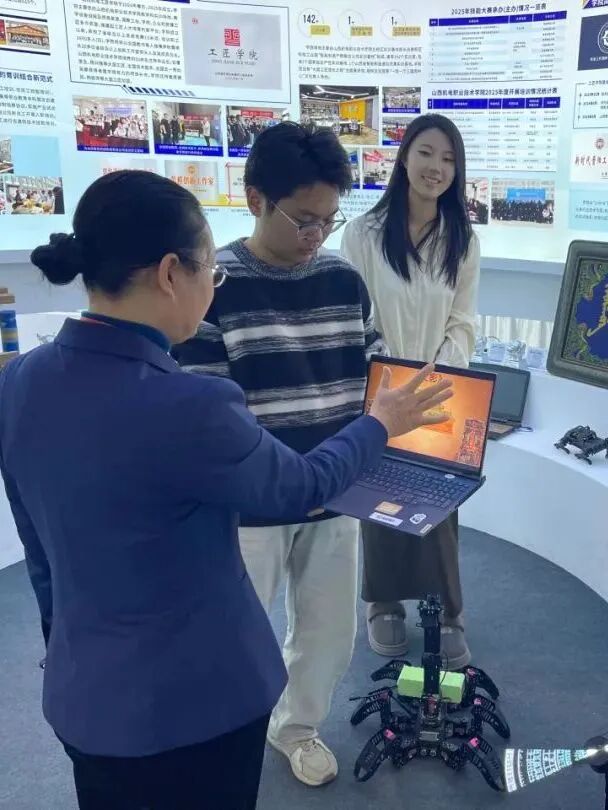 11月5日,2025年山西省“五小”创新大赛优秀成果展在晋阳湖国际会展中心盛大开幕。山西应用科技学院三创学院柴琼老师及“微笑永光:基于体感共情的天龙山佛首数字重生计划”、“墨方智耒”项目团队受邀,全方位展示了我院在创新实践与传统工艺传承领域的卓越工作与丰硕成绩。