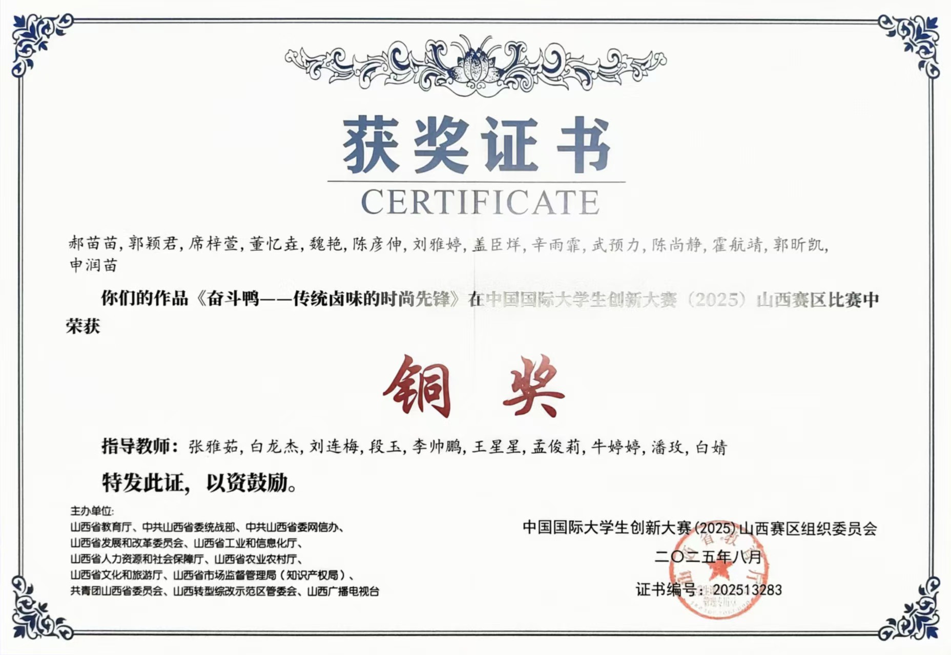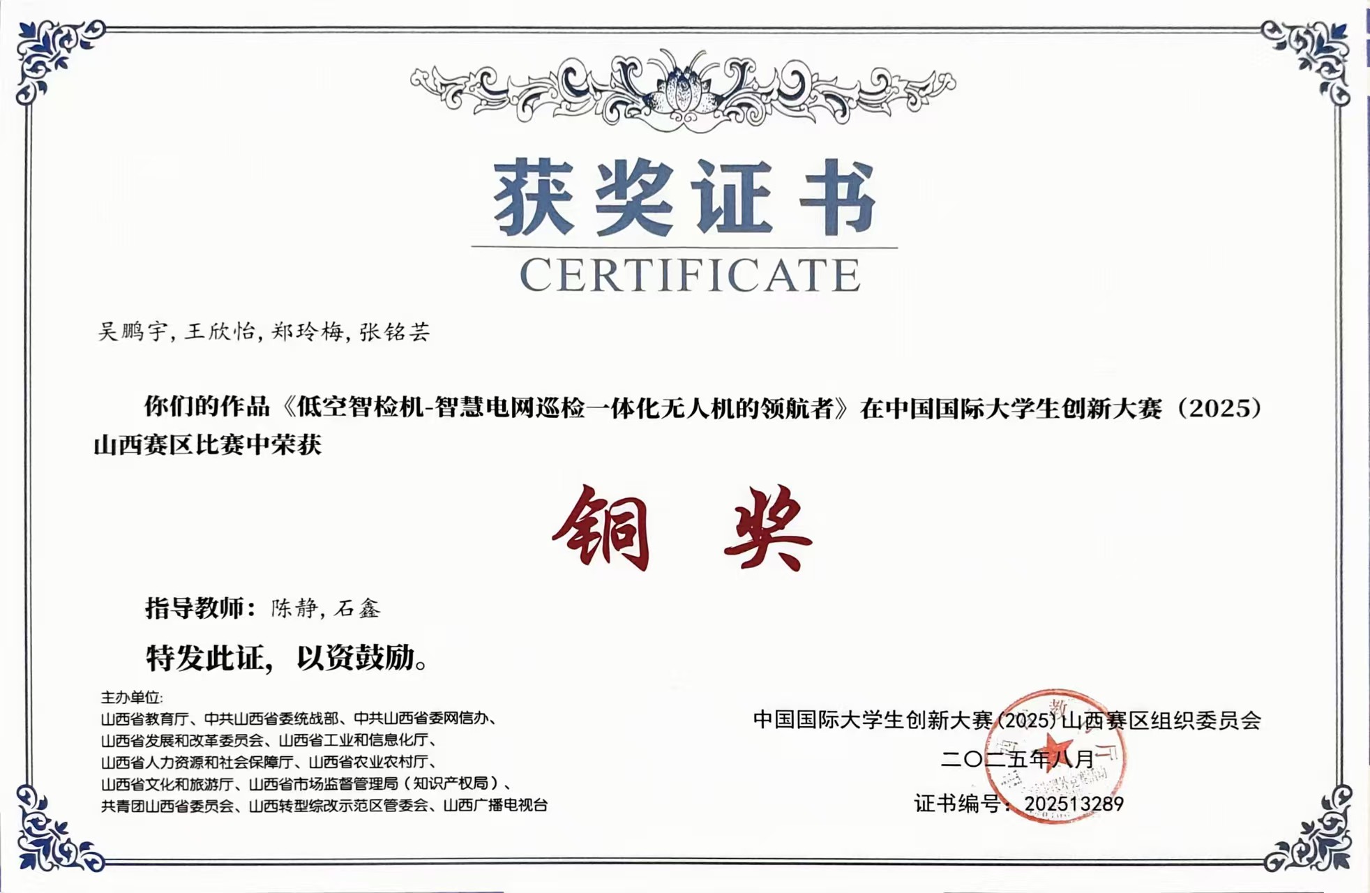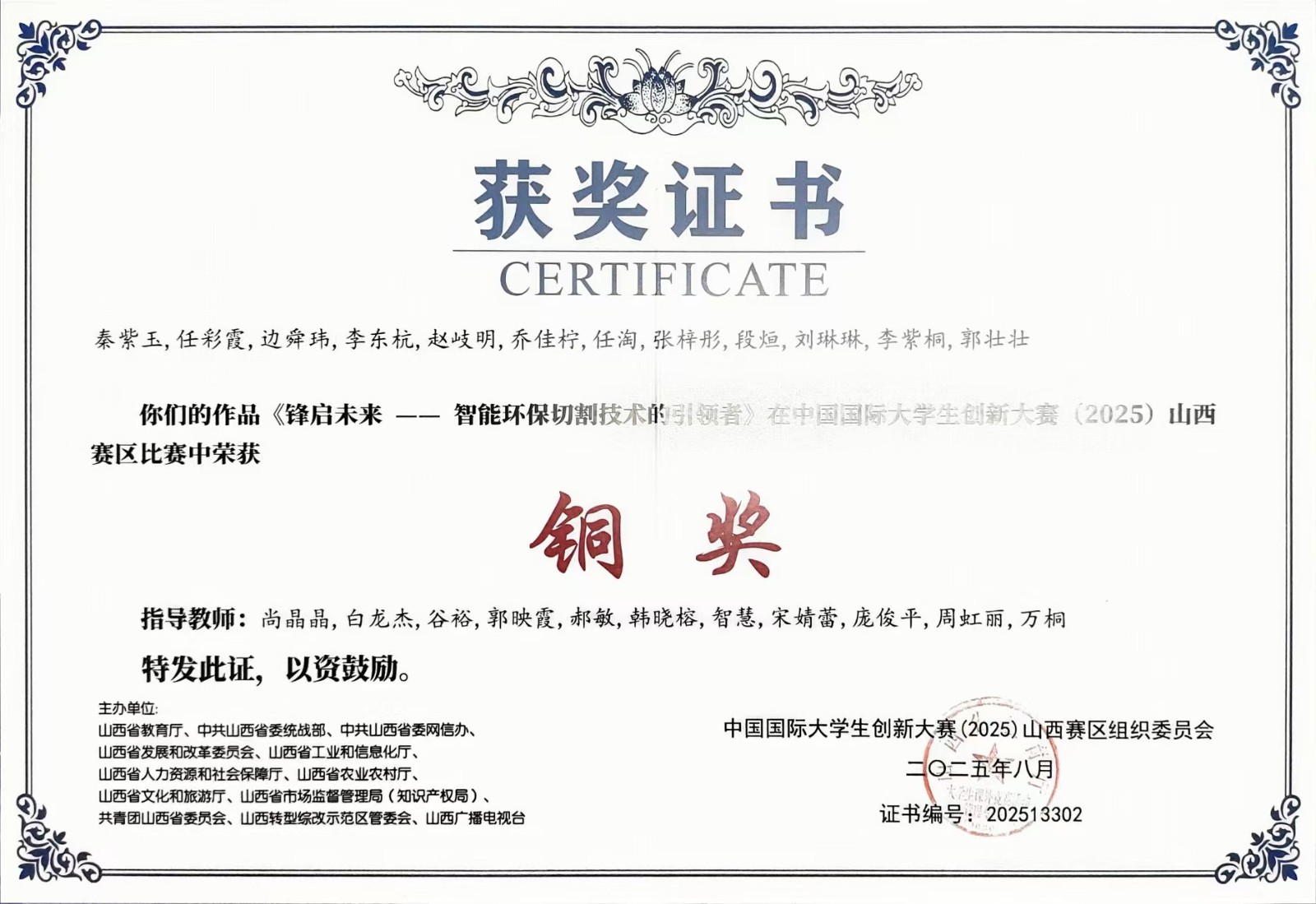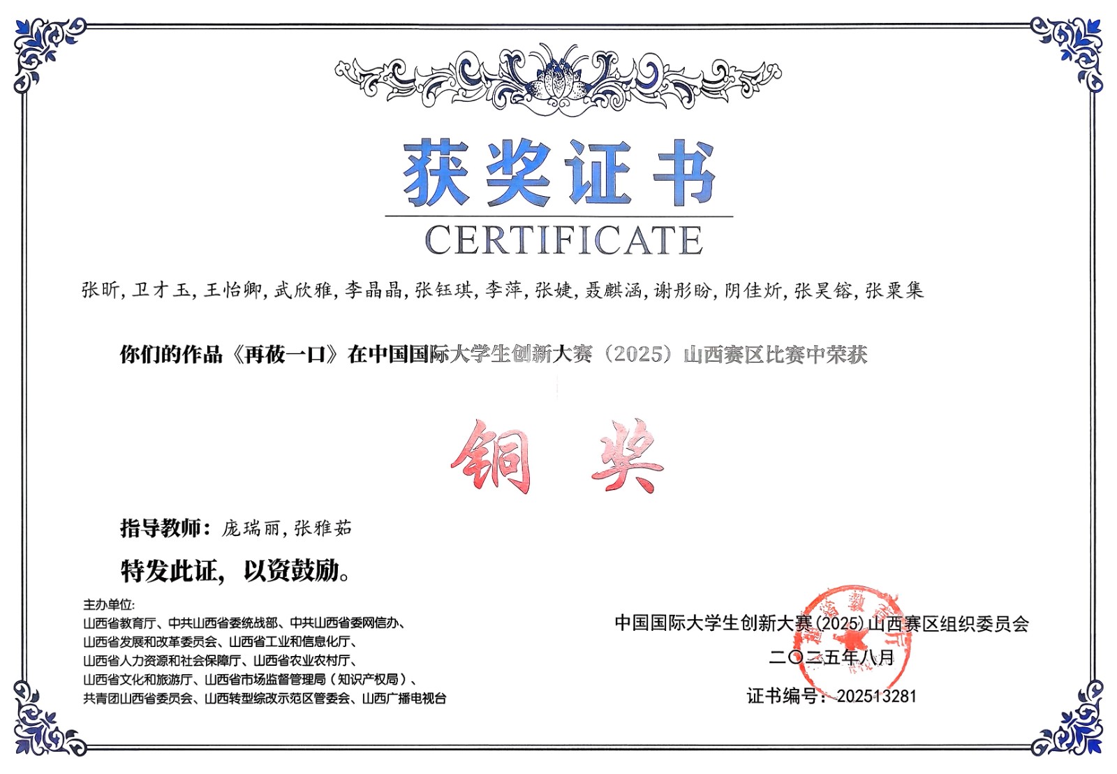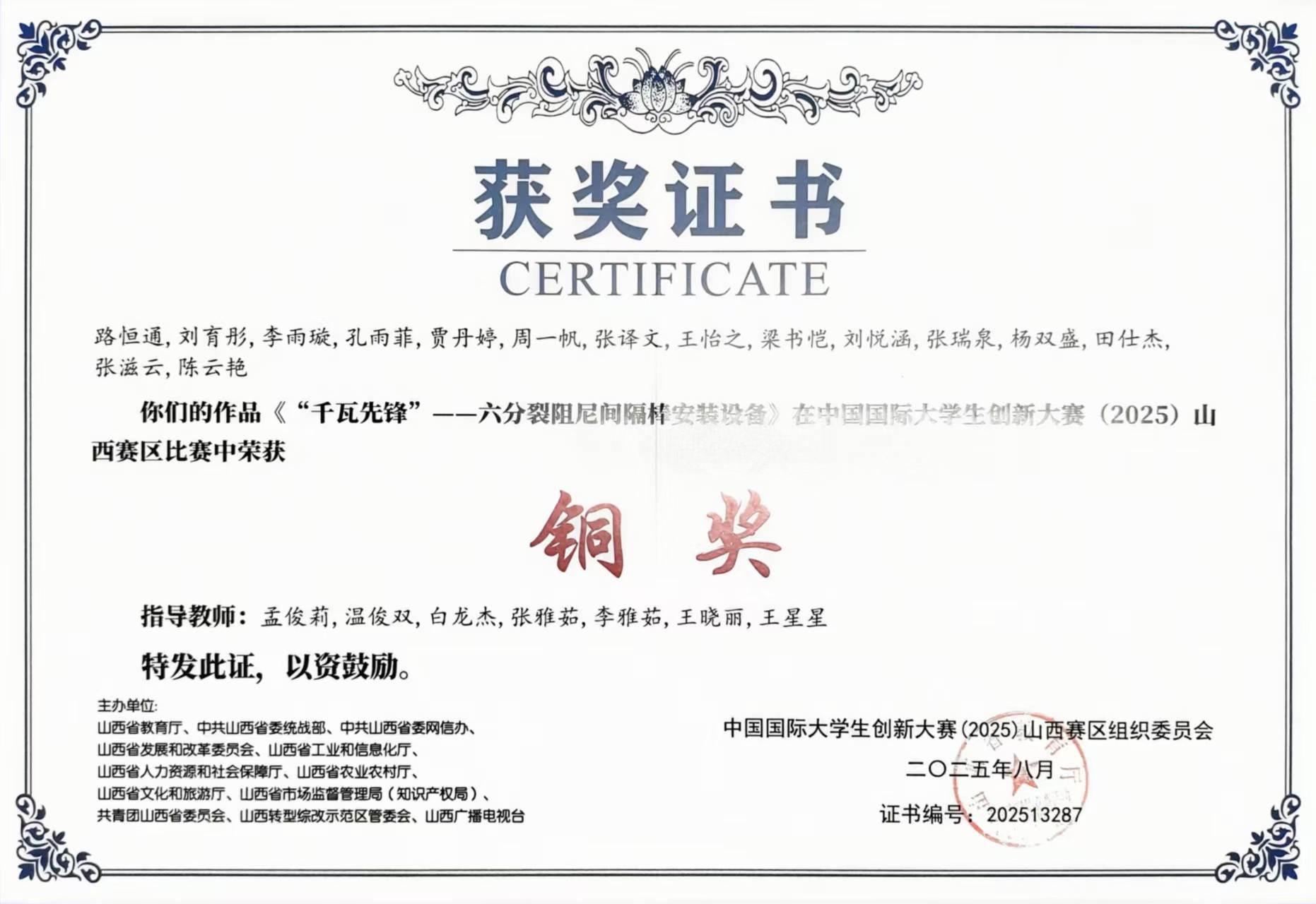 中国国际大学生创新大赛(2025)省赛获奖证书