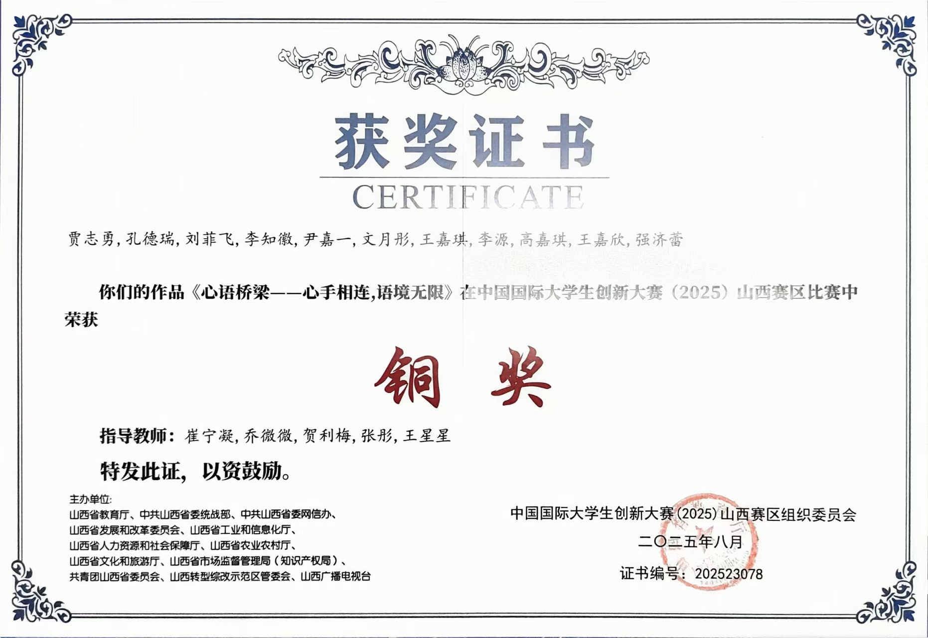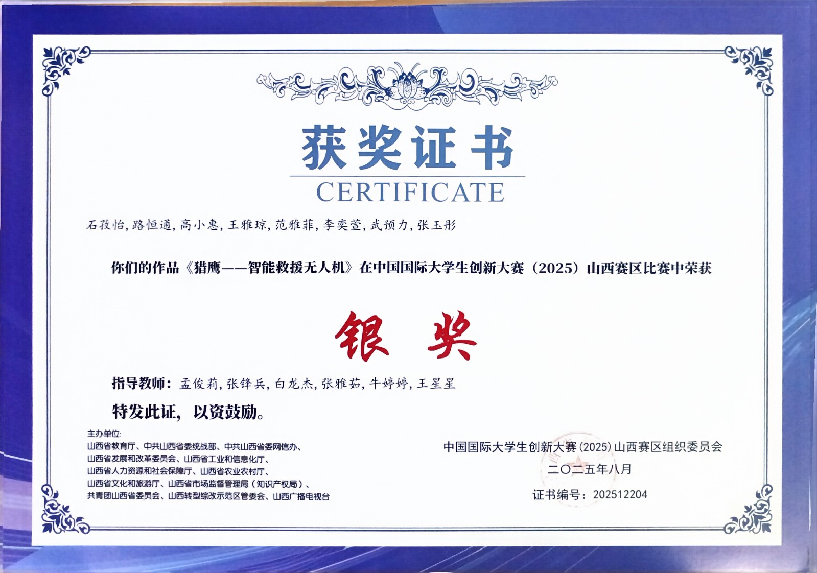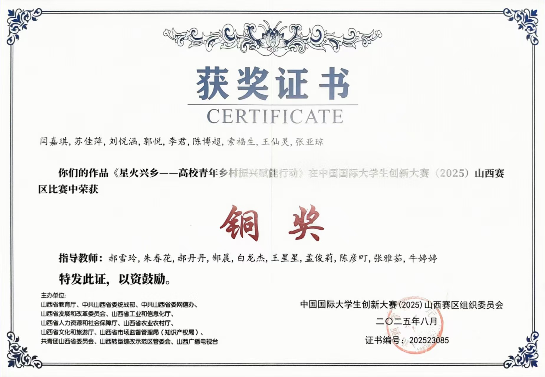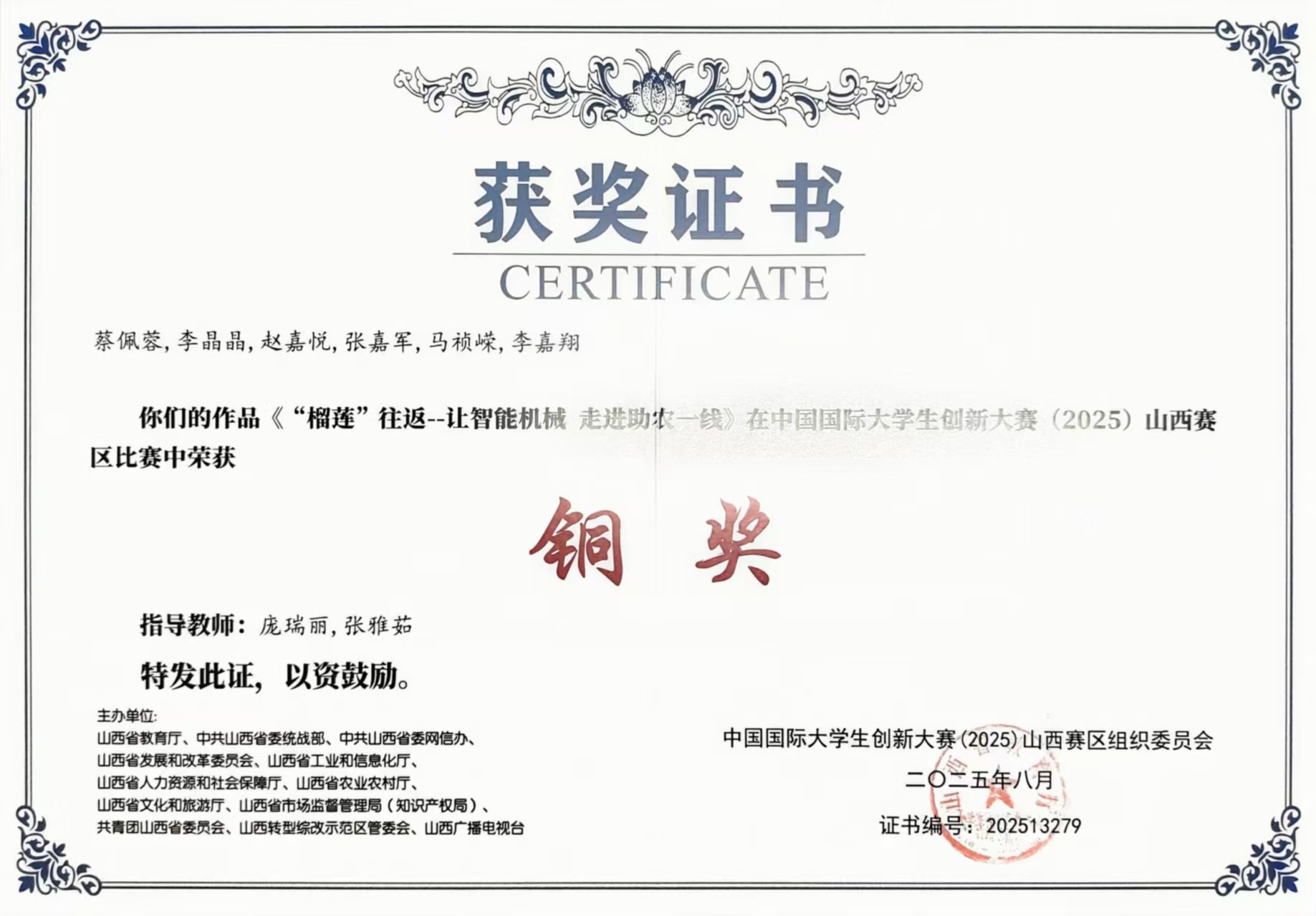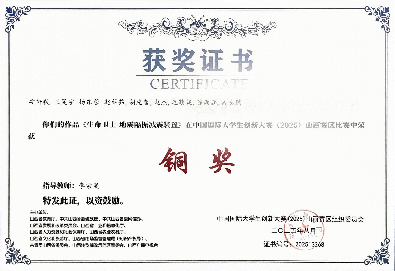 中国国际大学生创新大赛(2025)省赛获奖证书