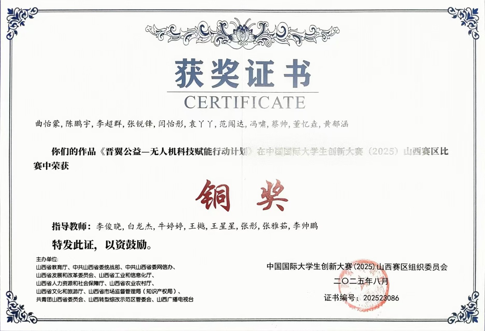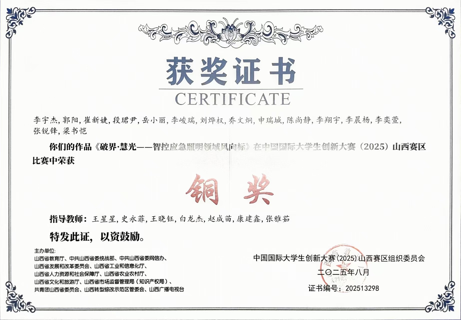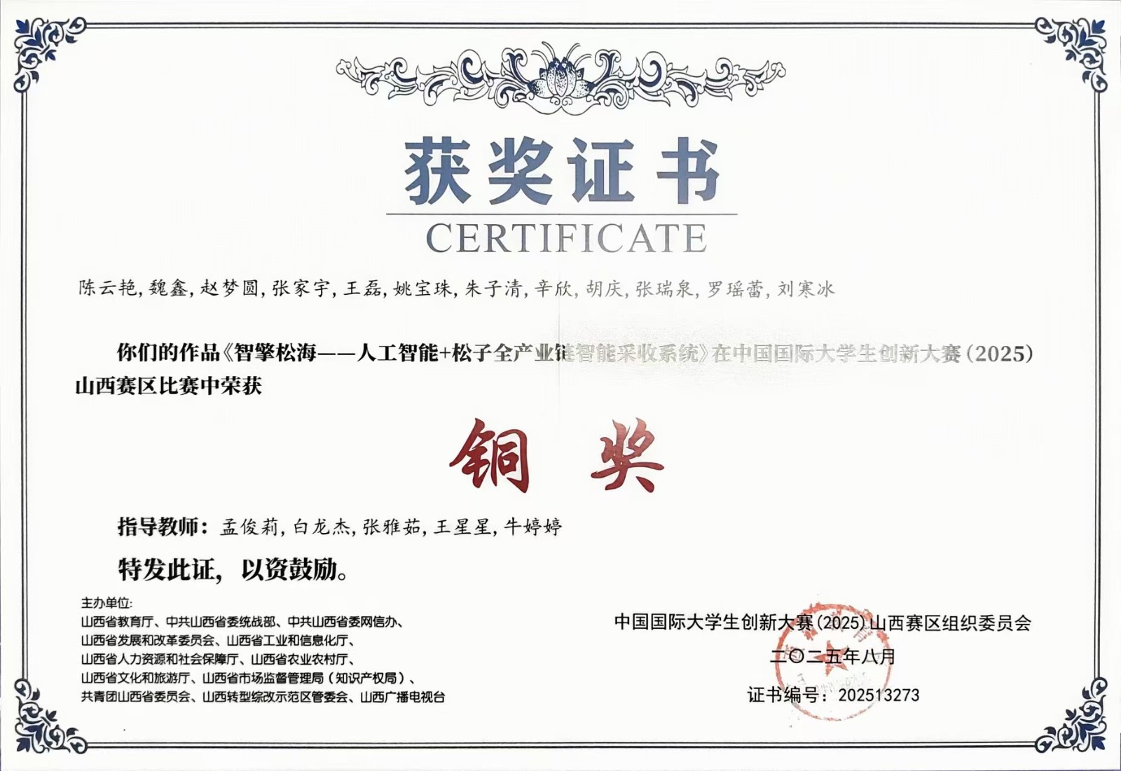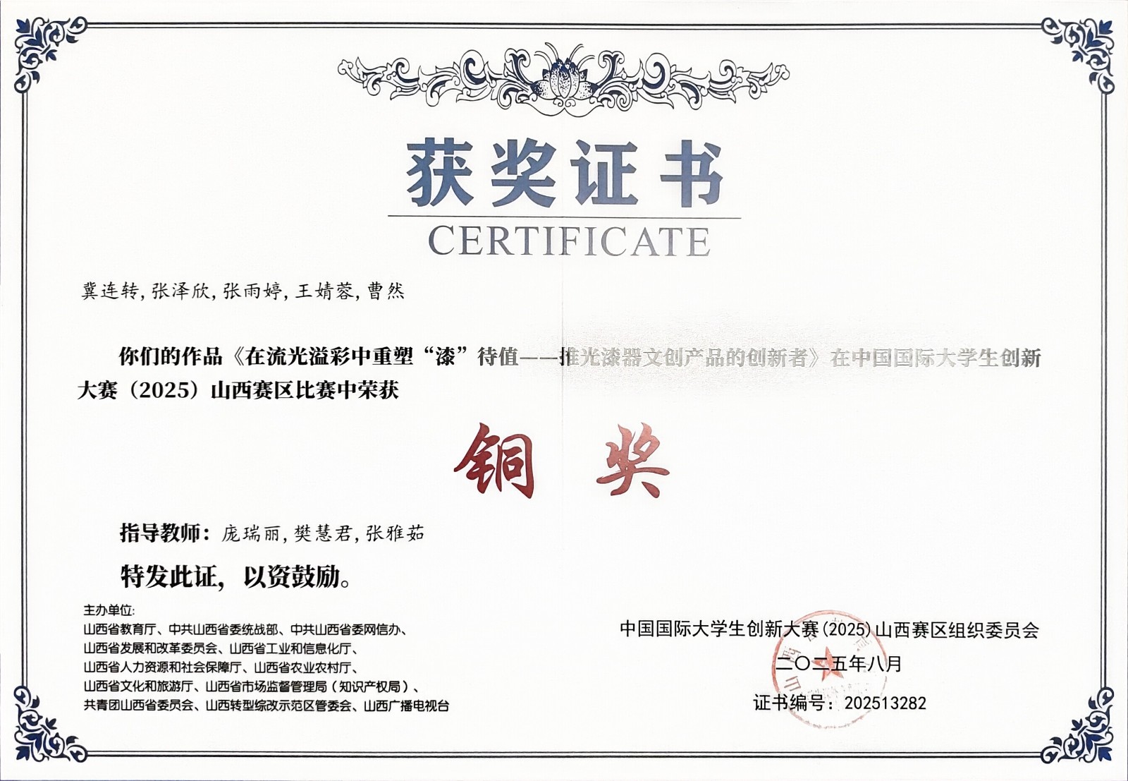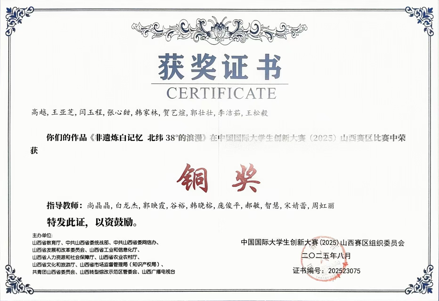 中国国际大学生创新大赛(2025)省赛获奖证书