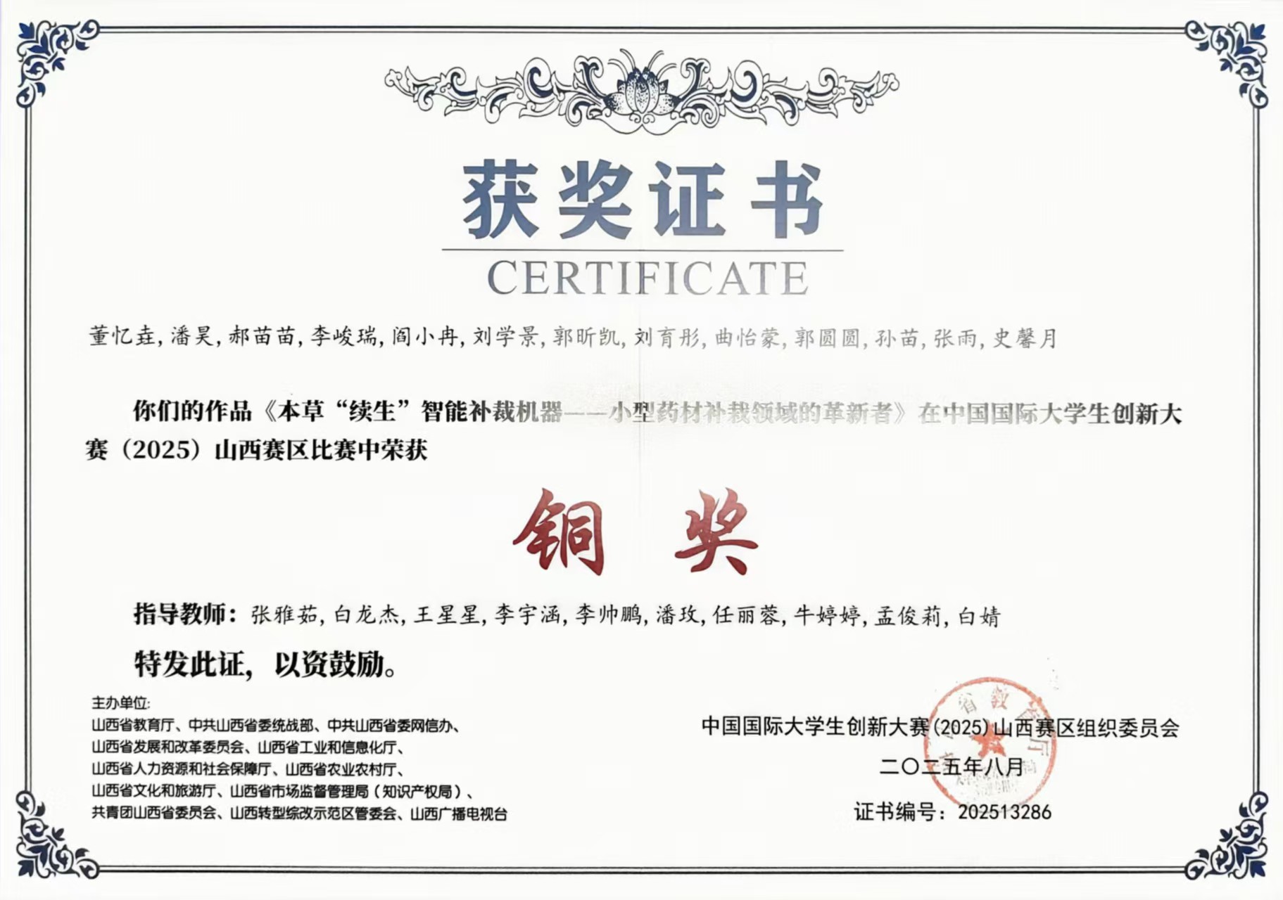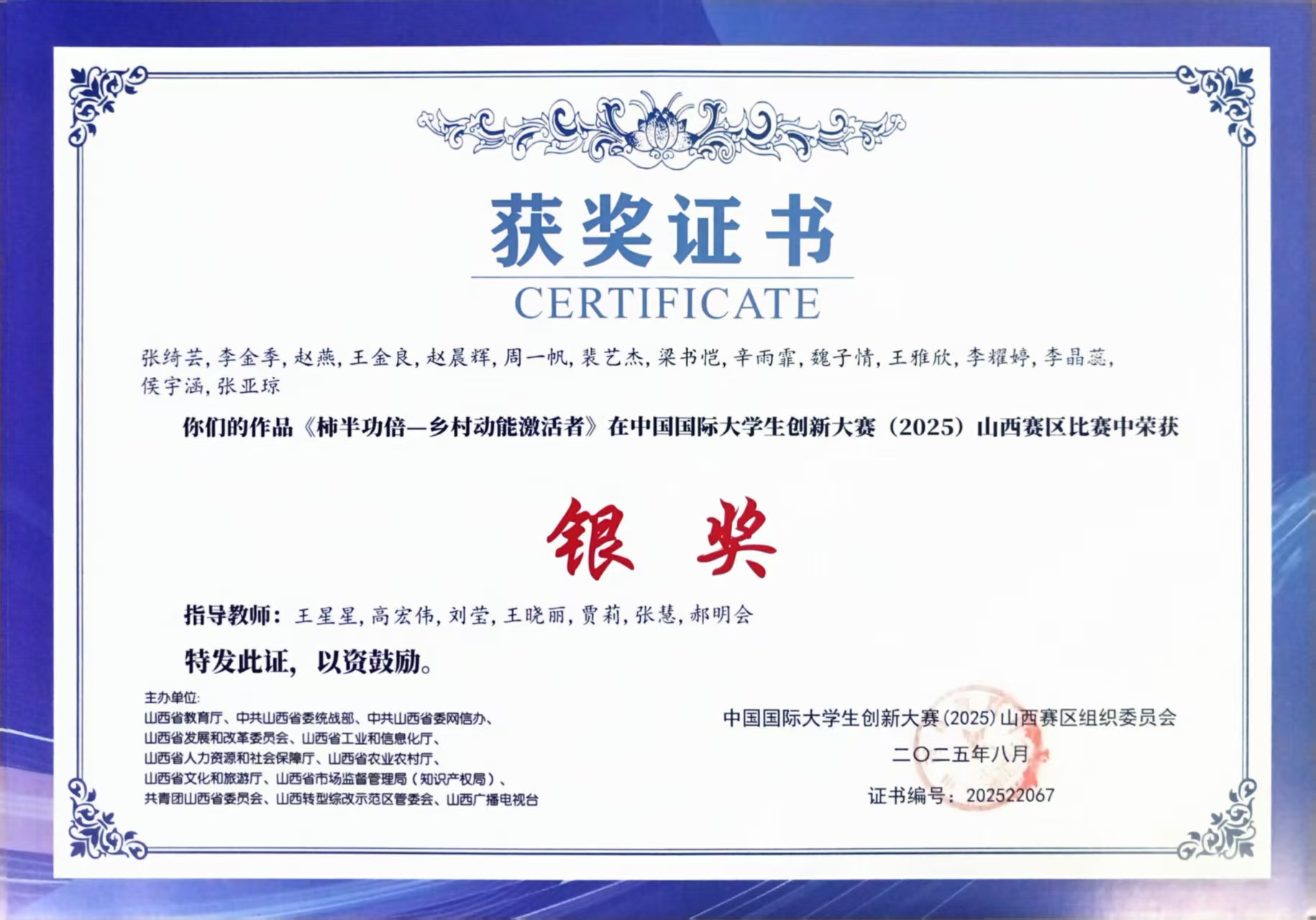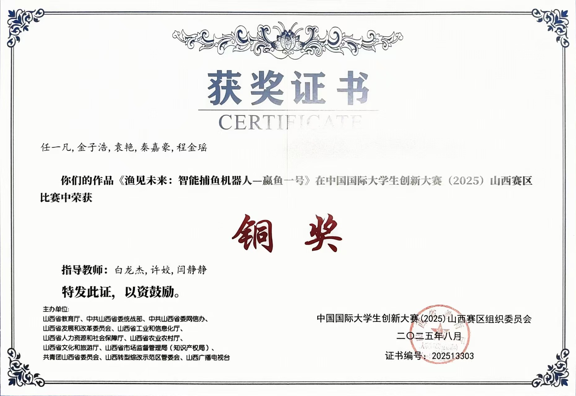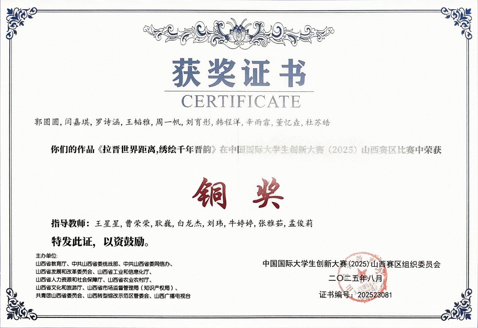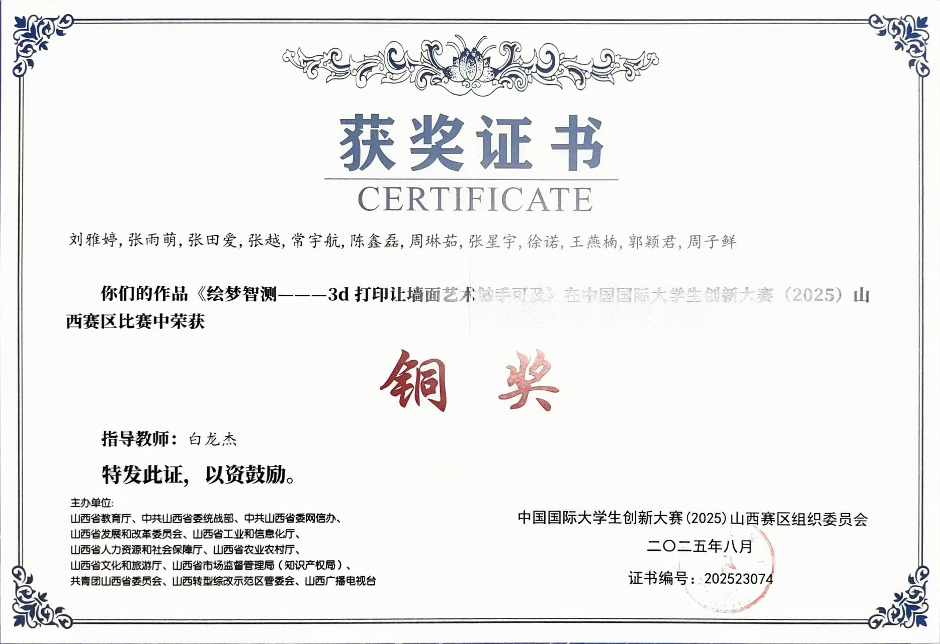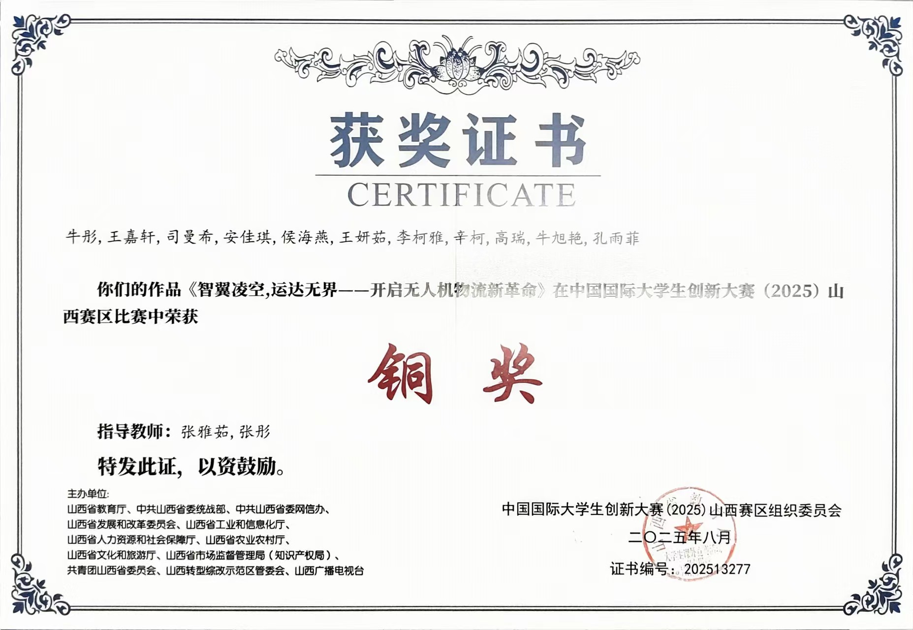 中国国际大学生创新大赛(2025)省赛获奖证书