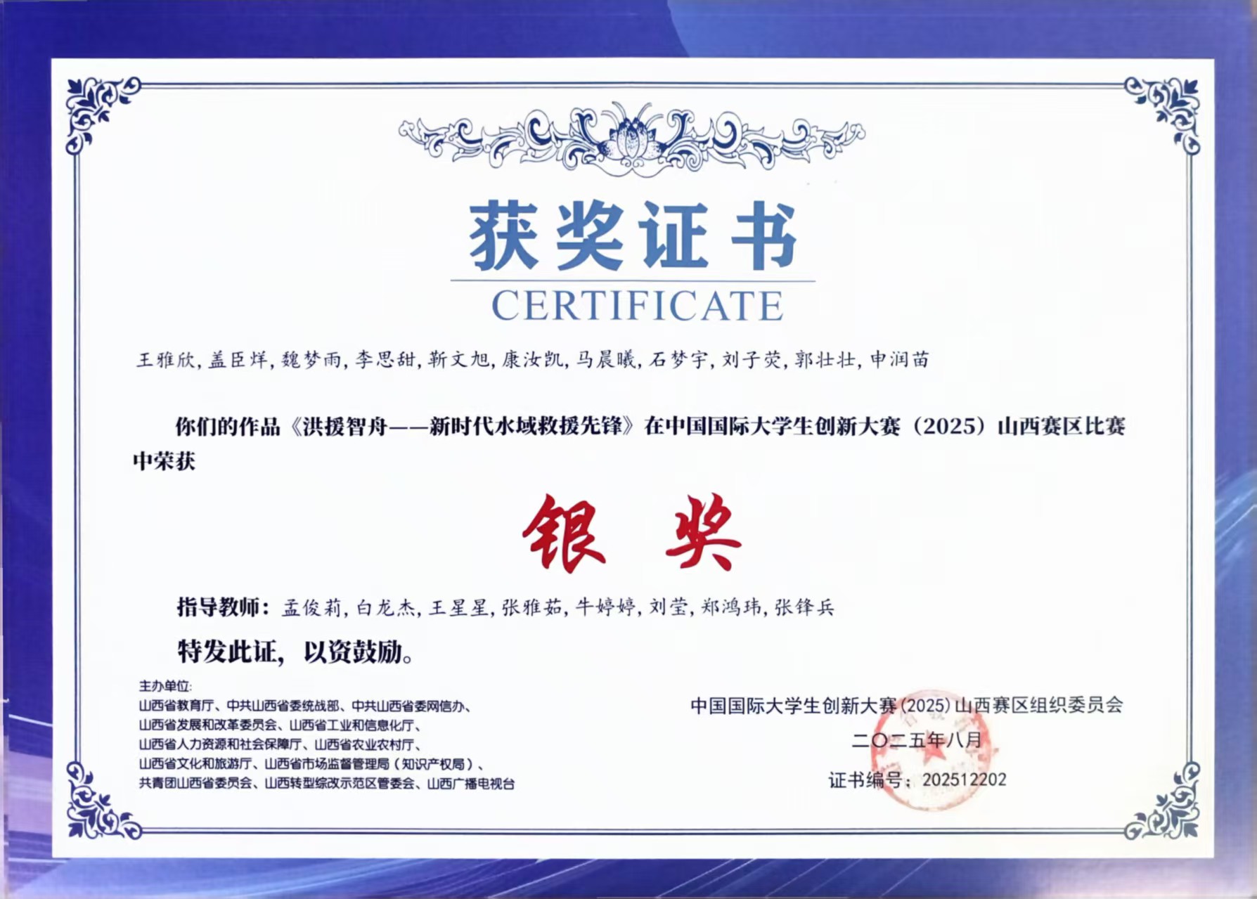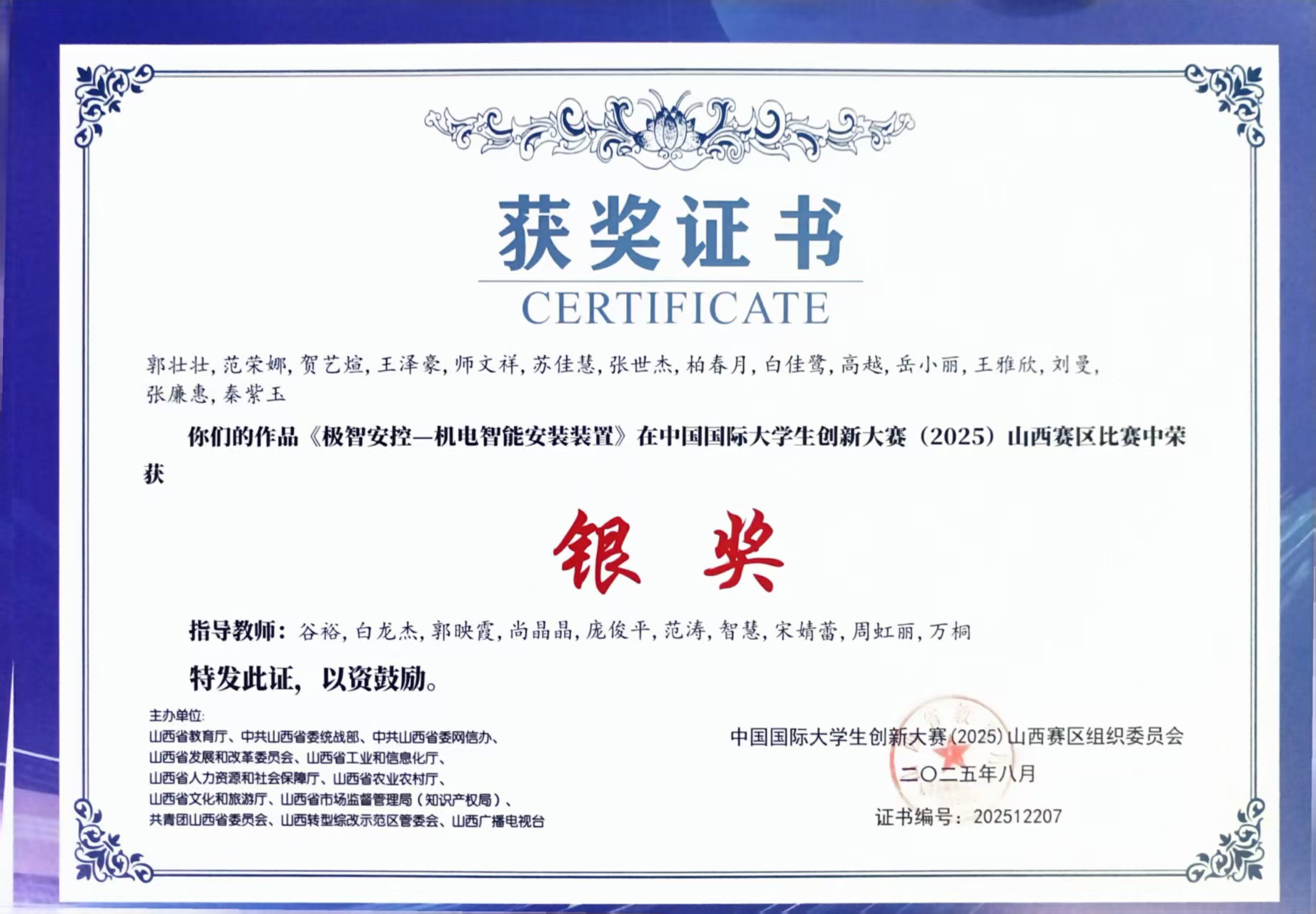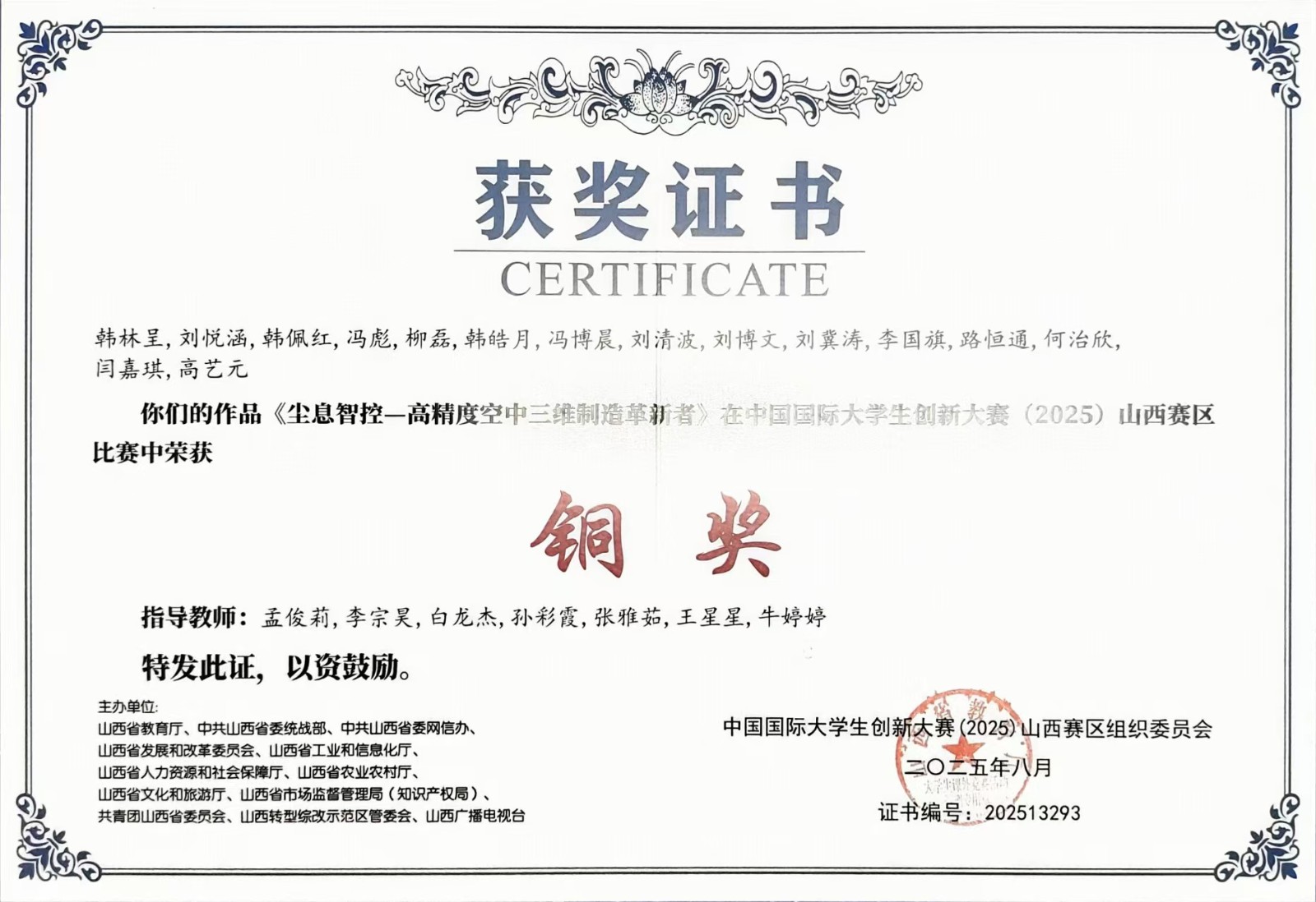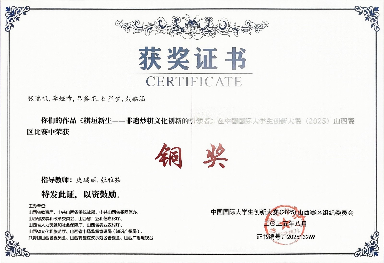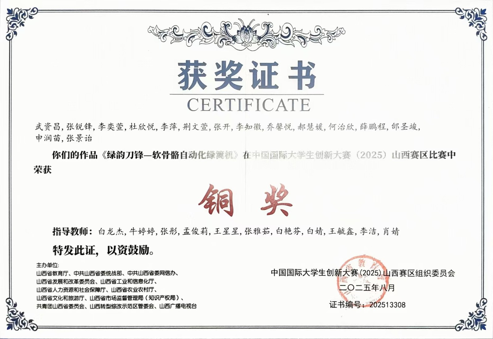 中国国际大学生创新大赛(2025)省赛获奖证书