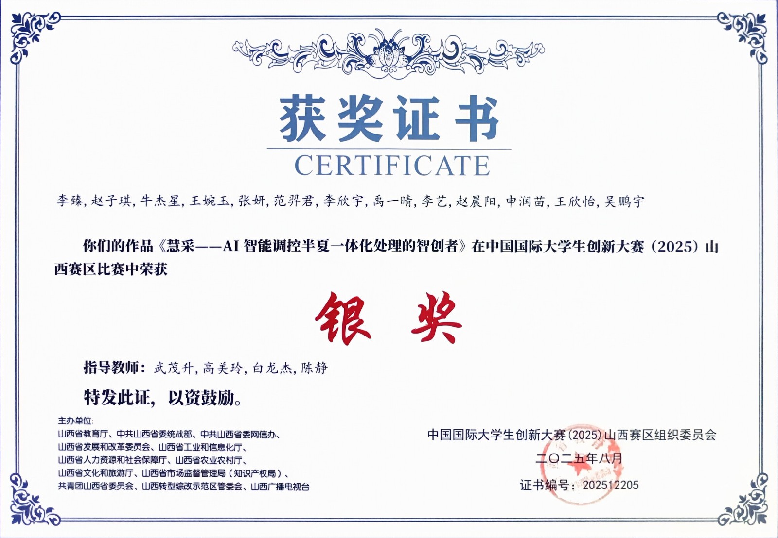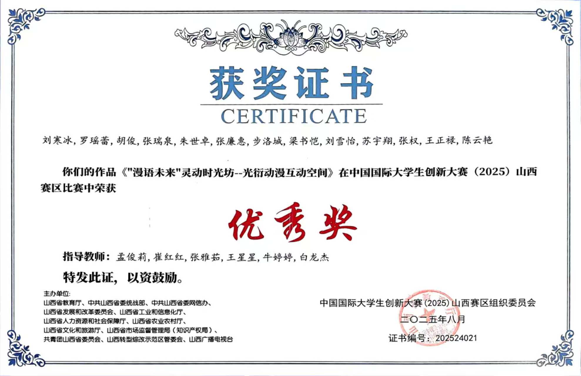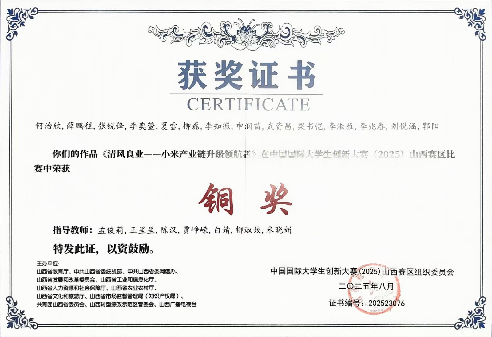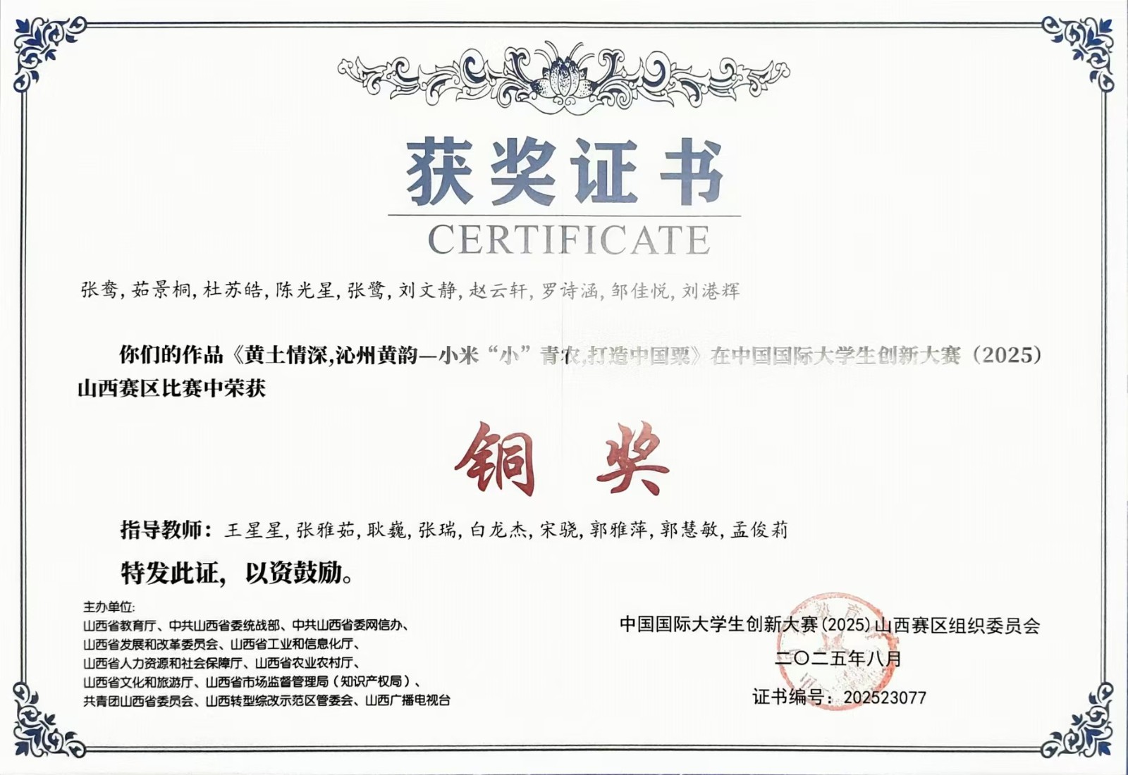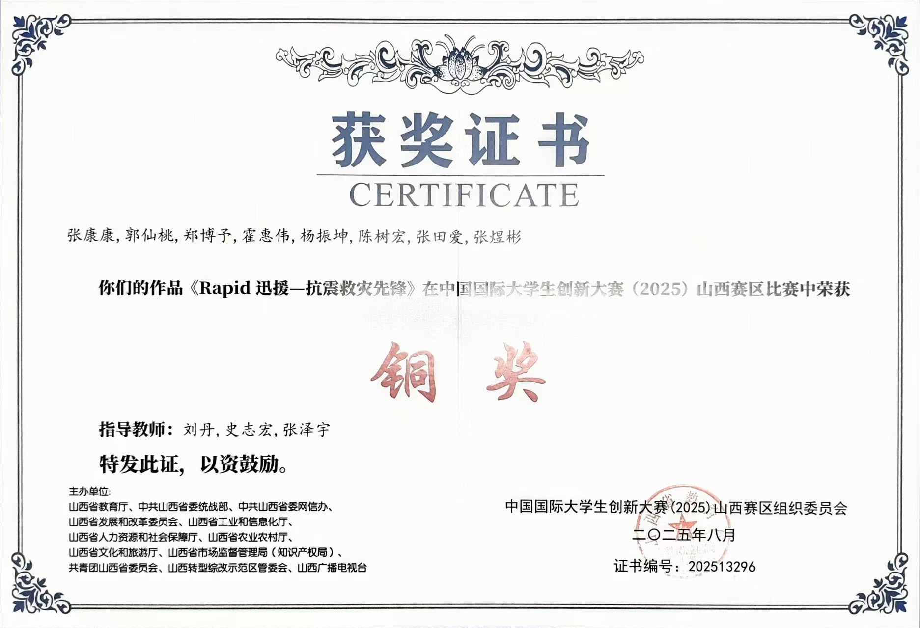 中国国际大学生创新大赛(2025)省赛获奖证书