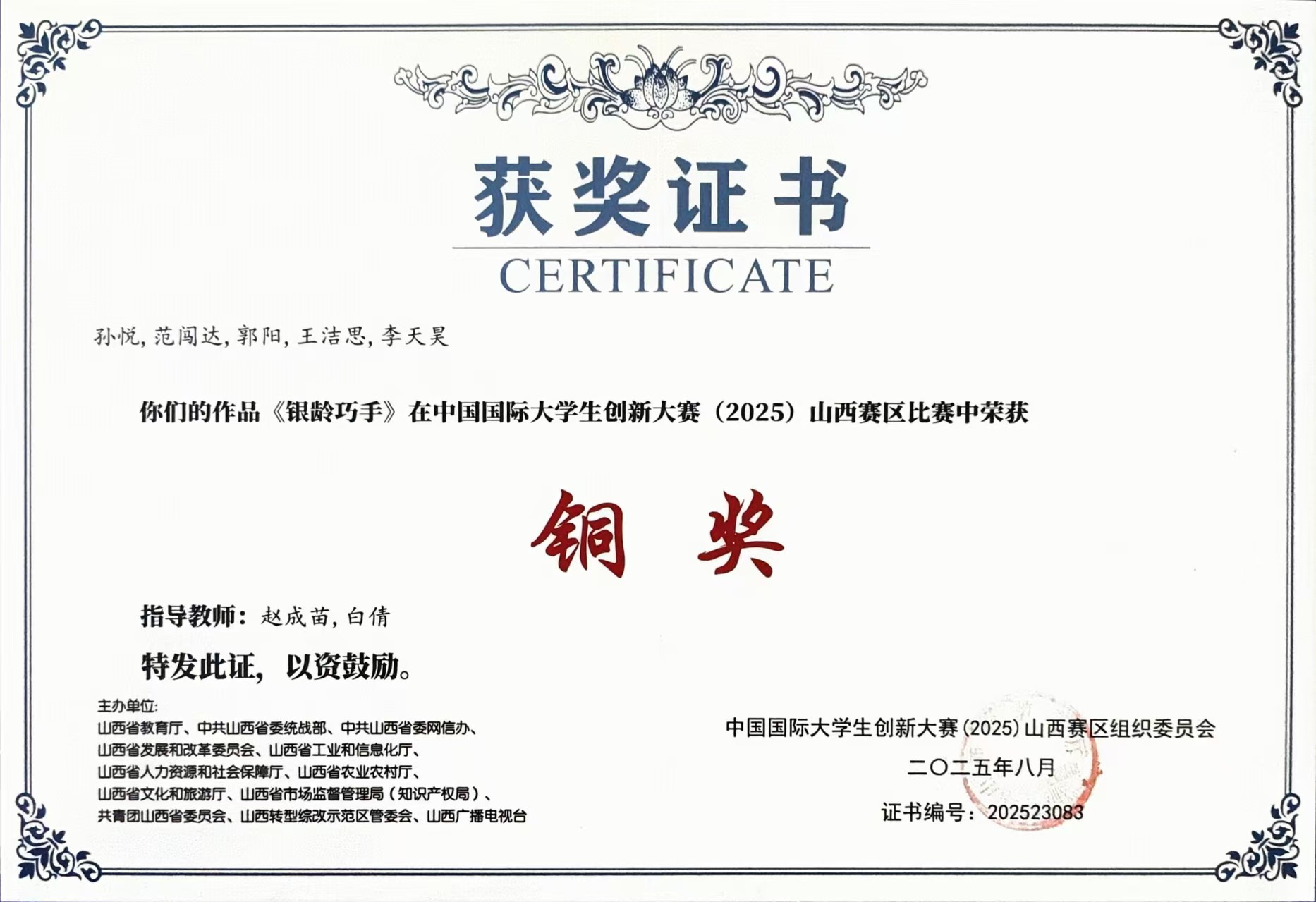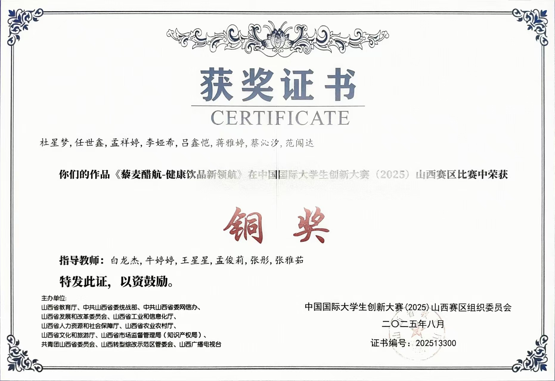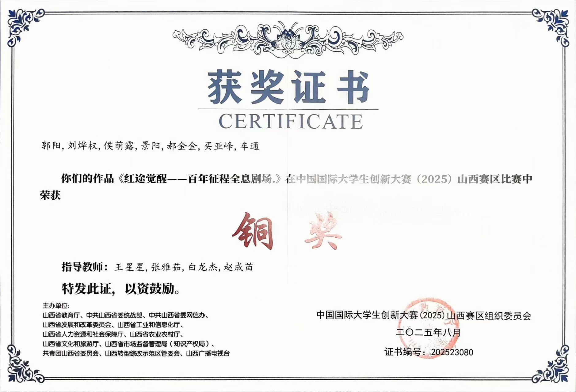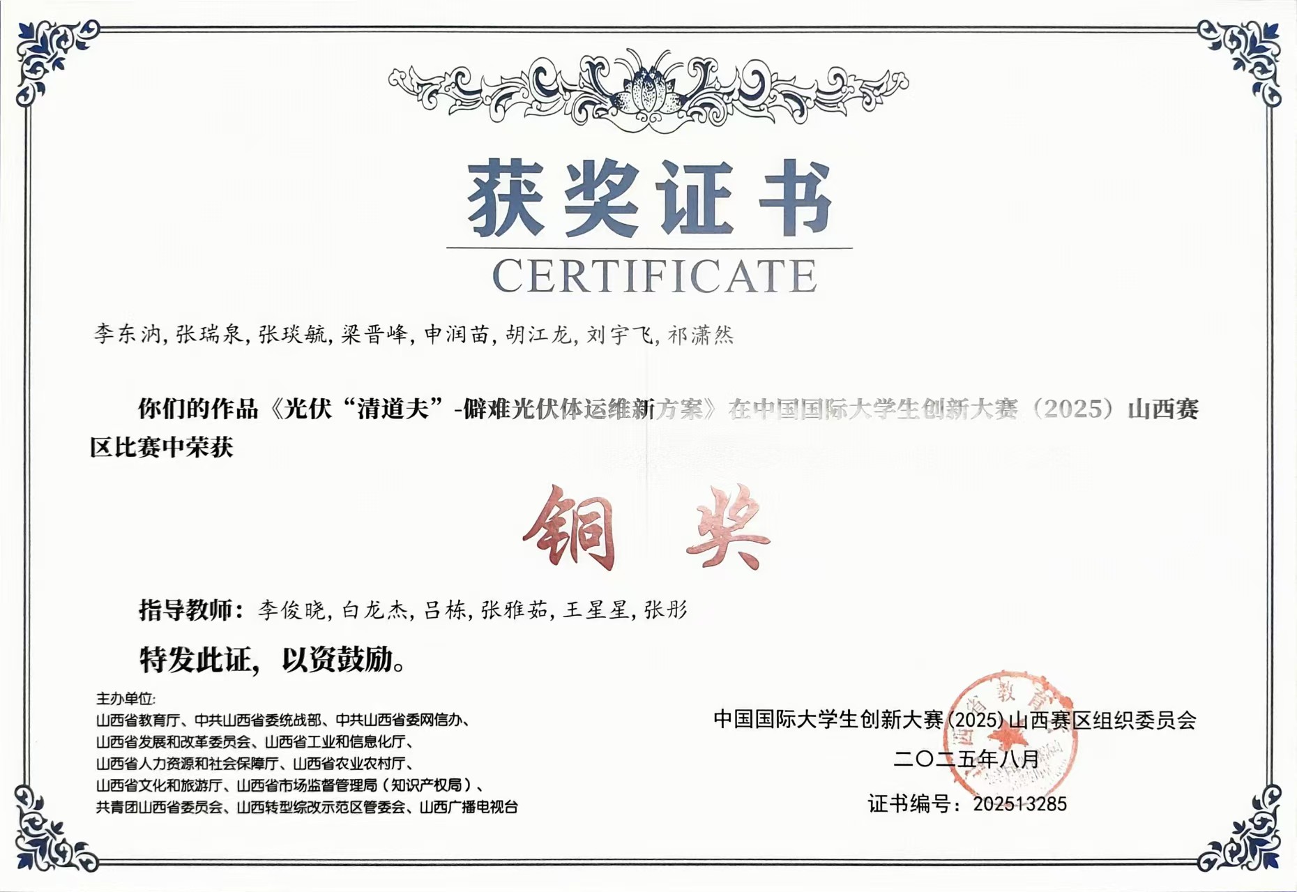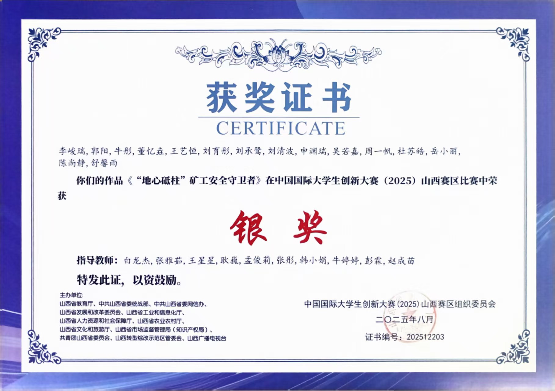中国国际大学生创新大赛(2025)省赛获奖证书