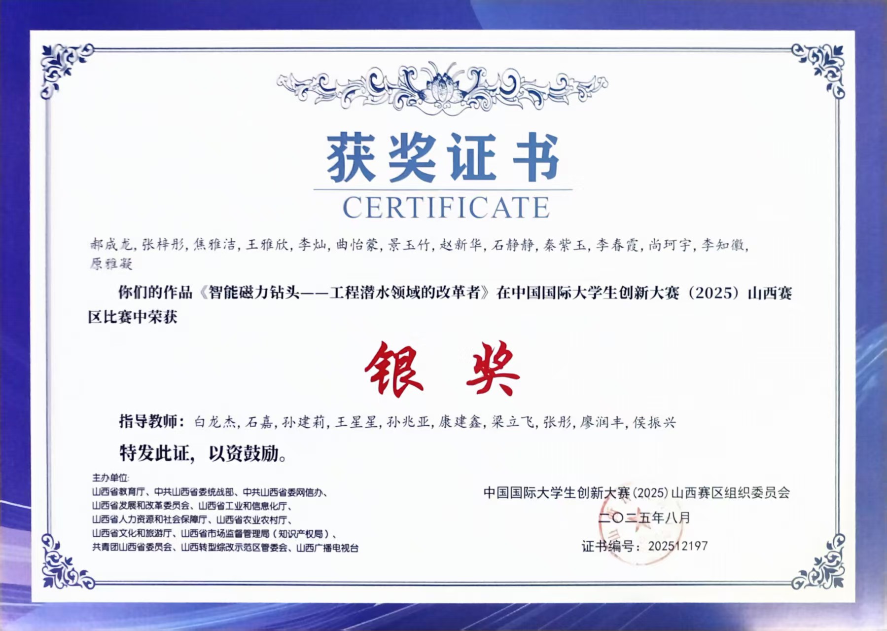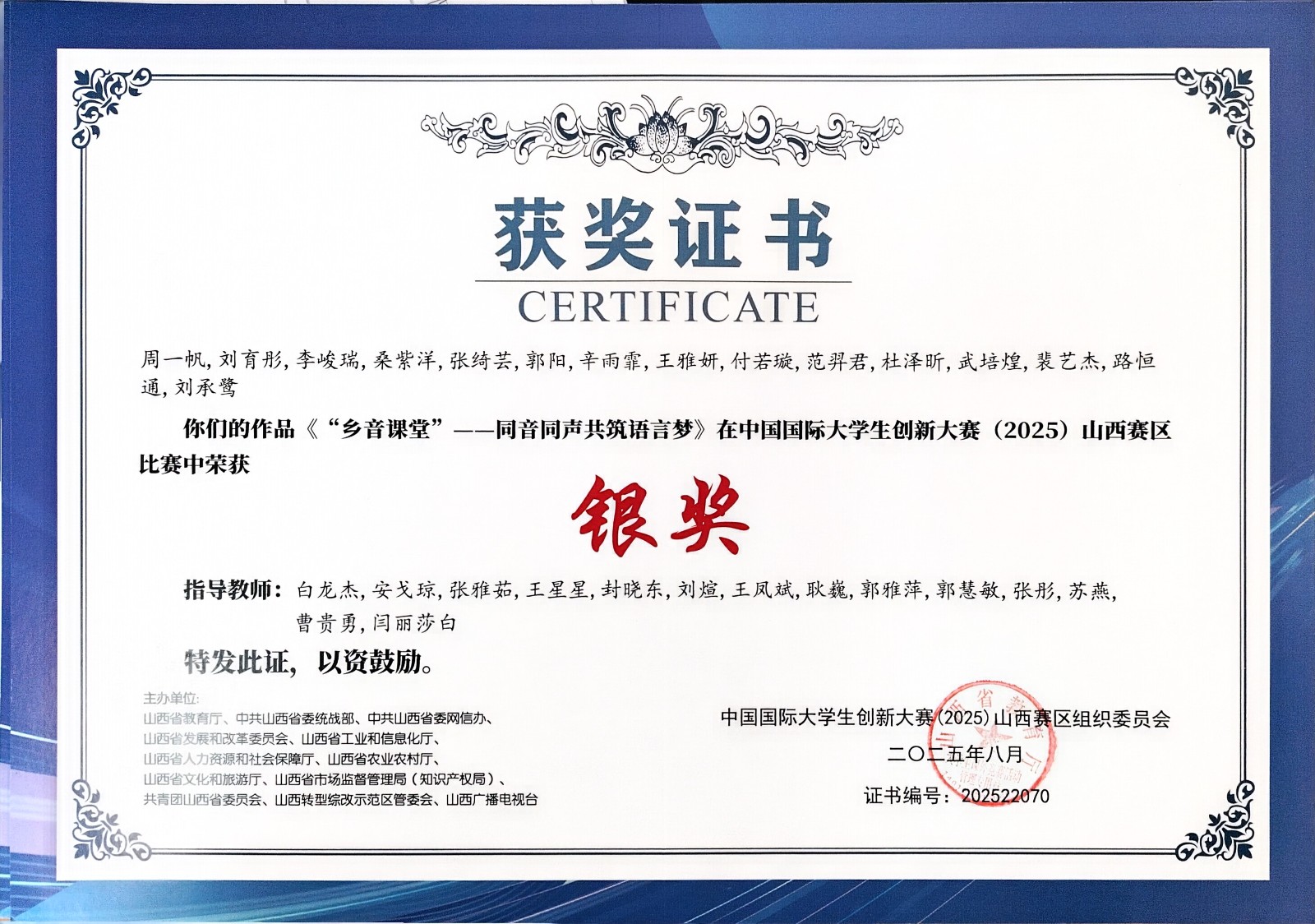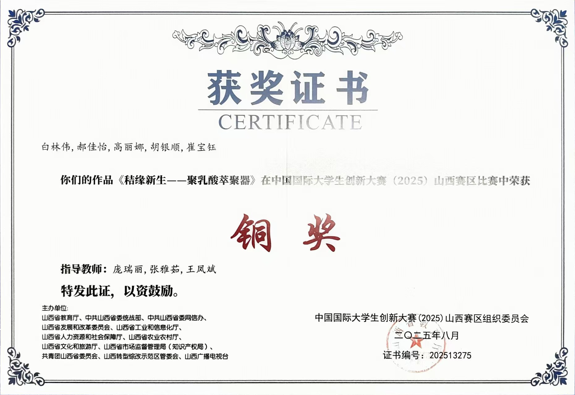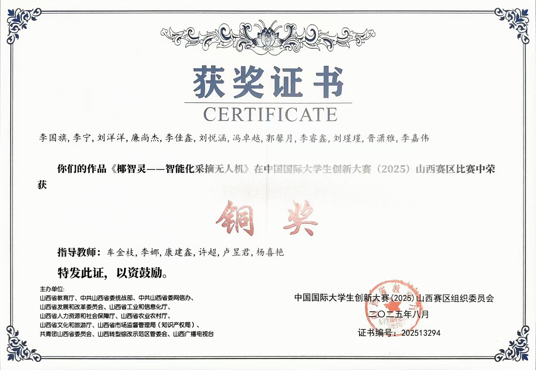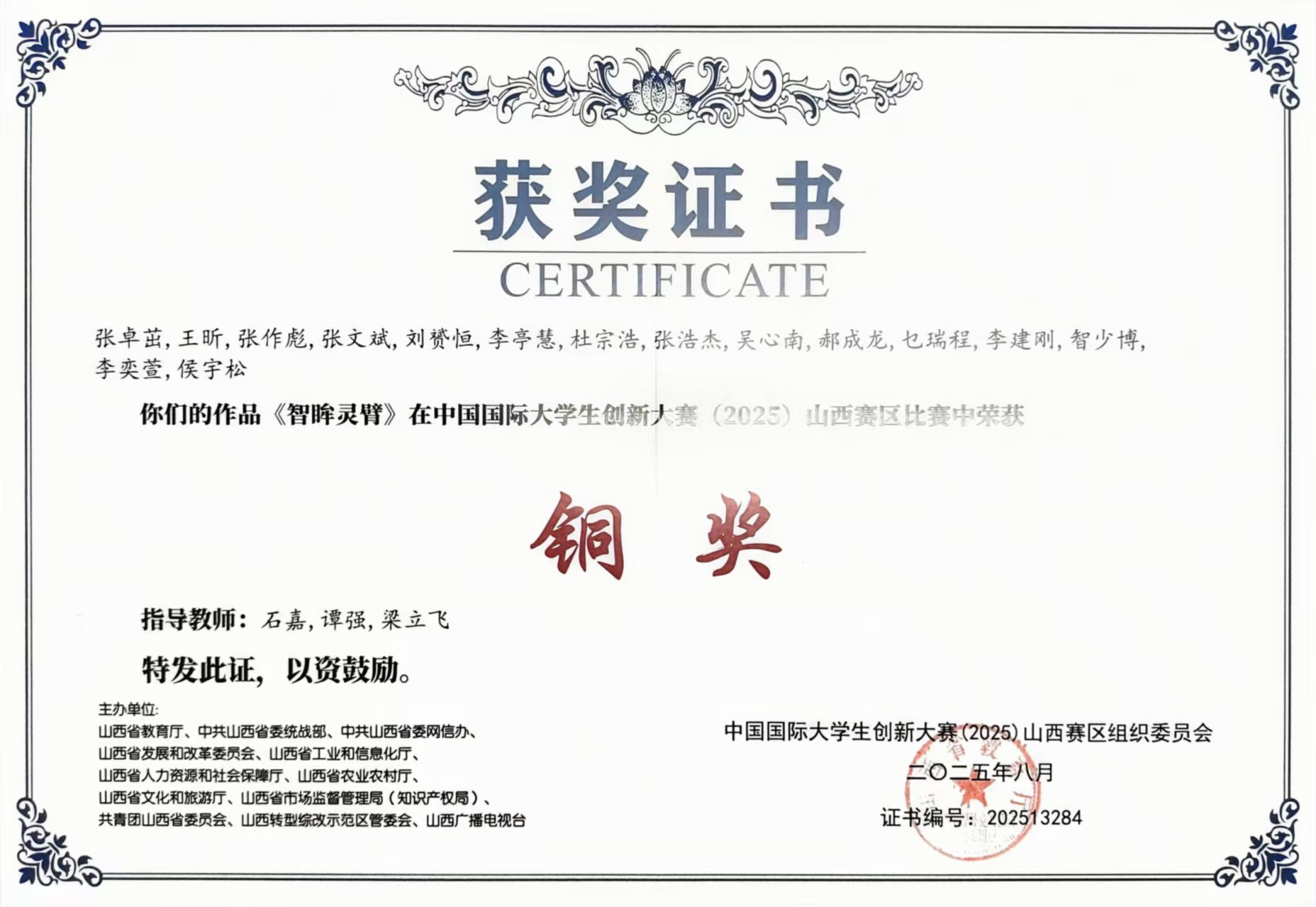 中国国际大学生创新大赛(2025)省赛获奖证书