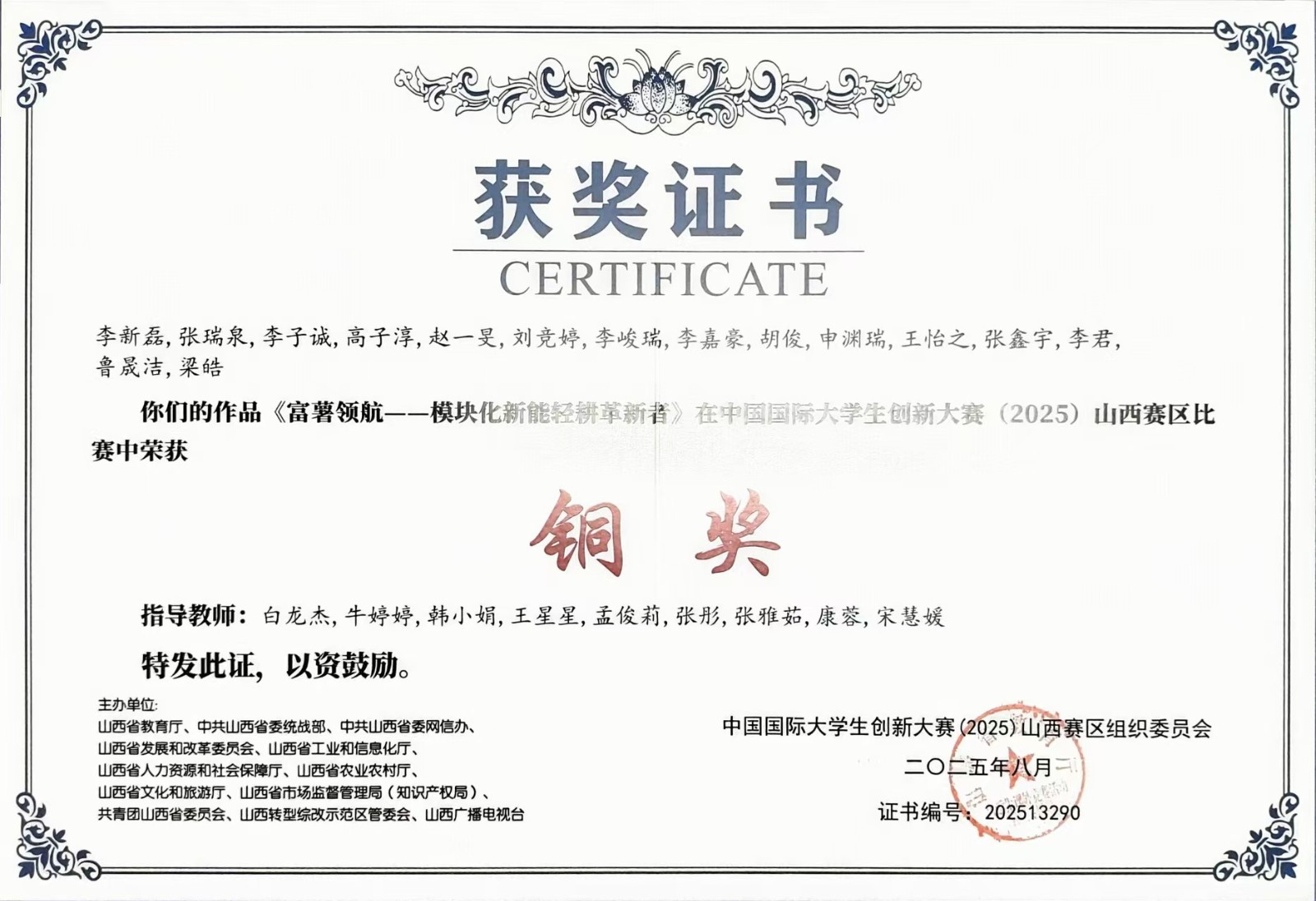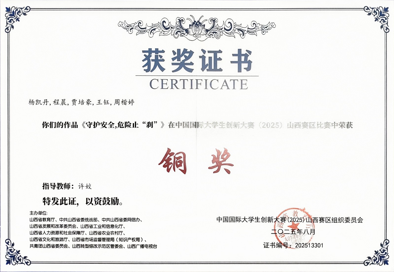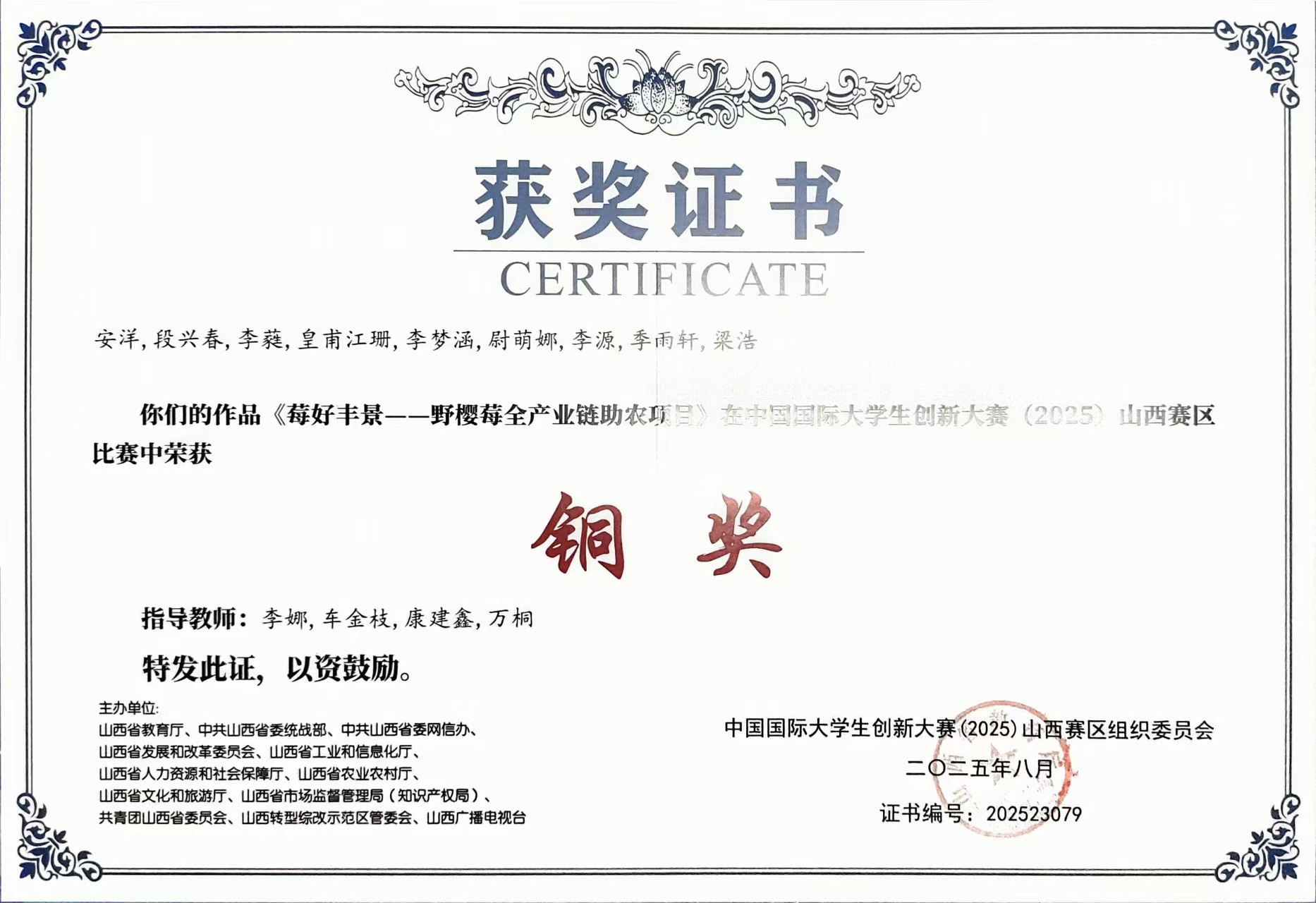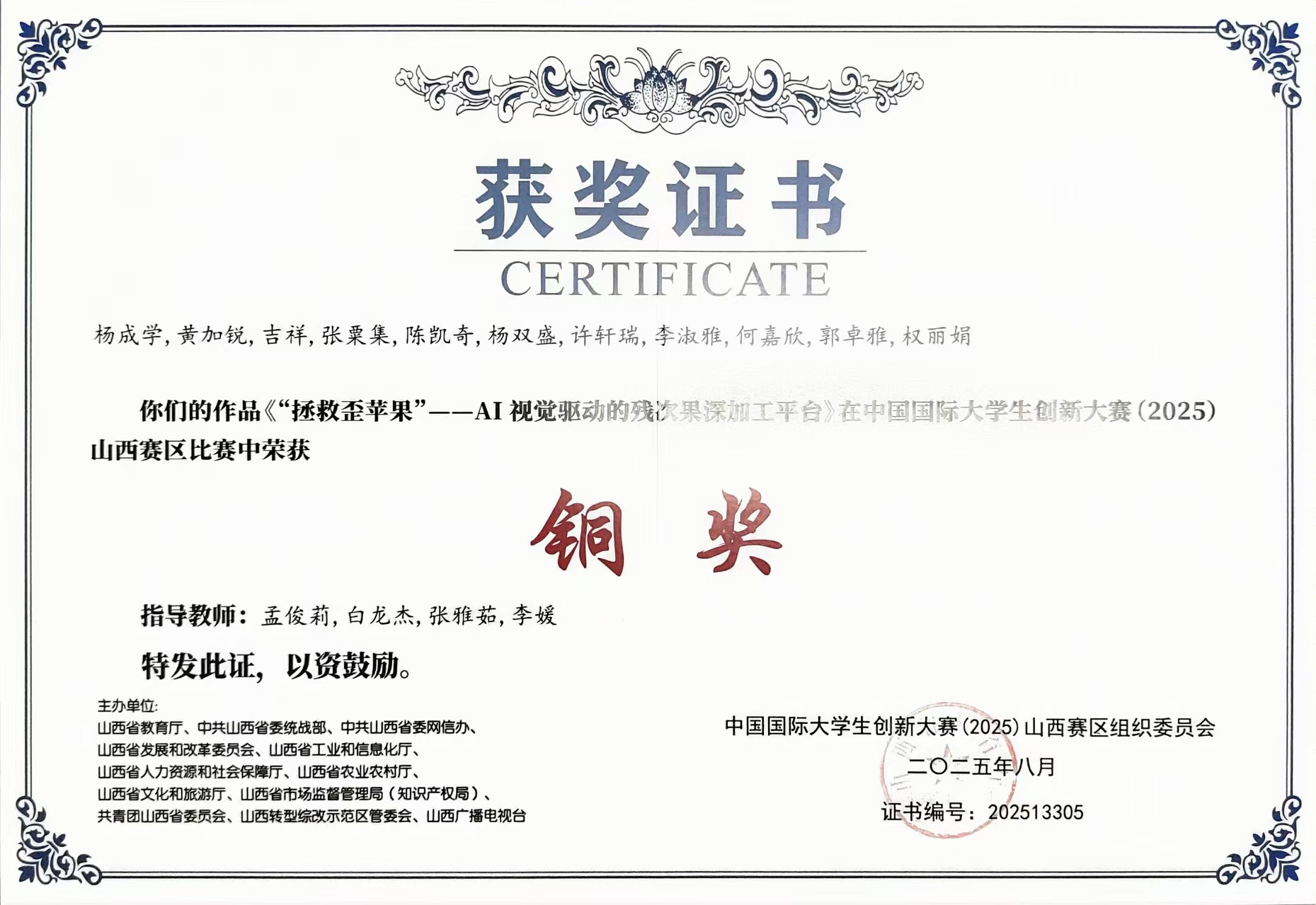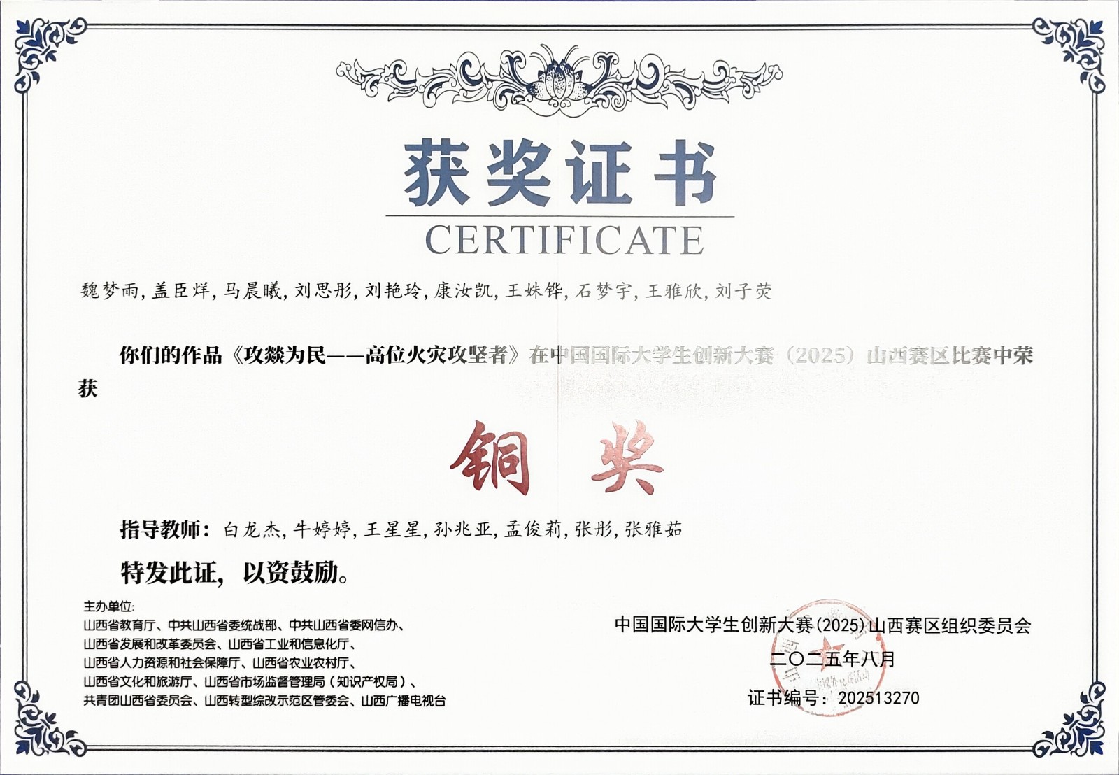 中国国际大学生创新大赛(2025)省赛获奖证书