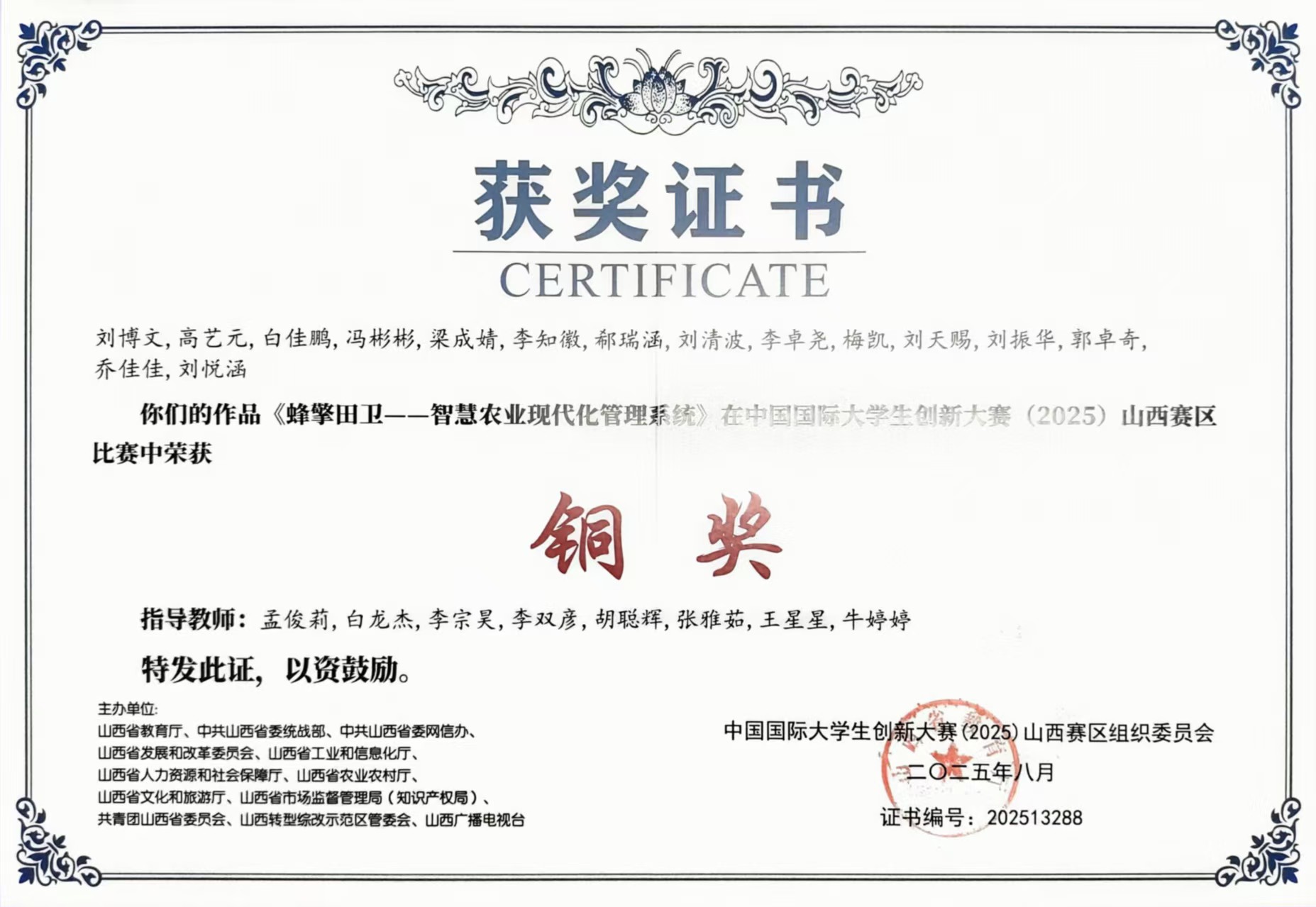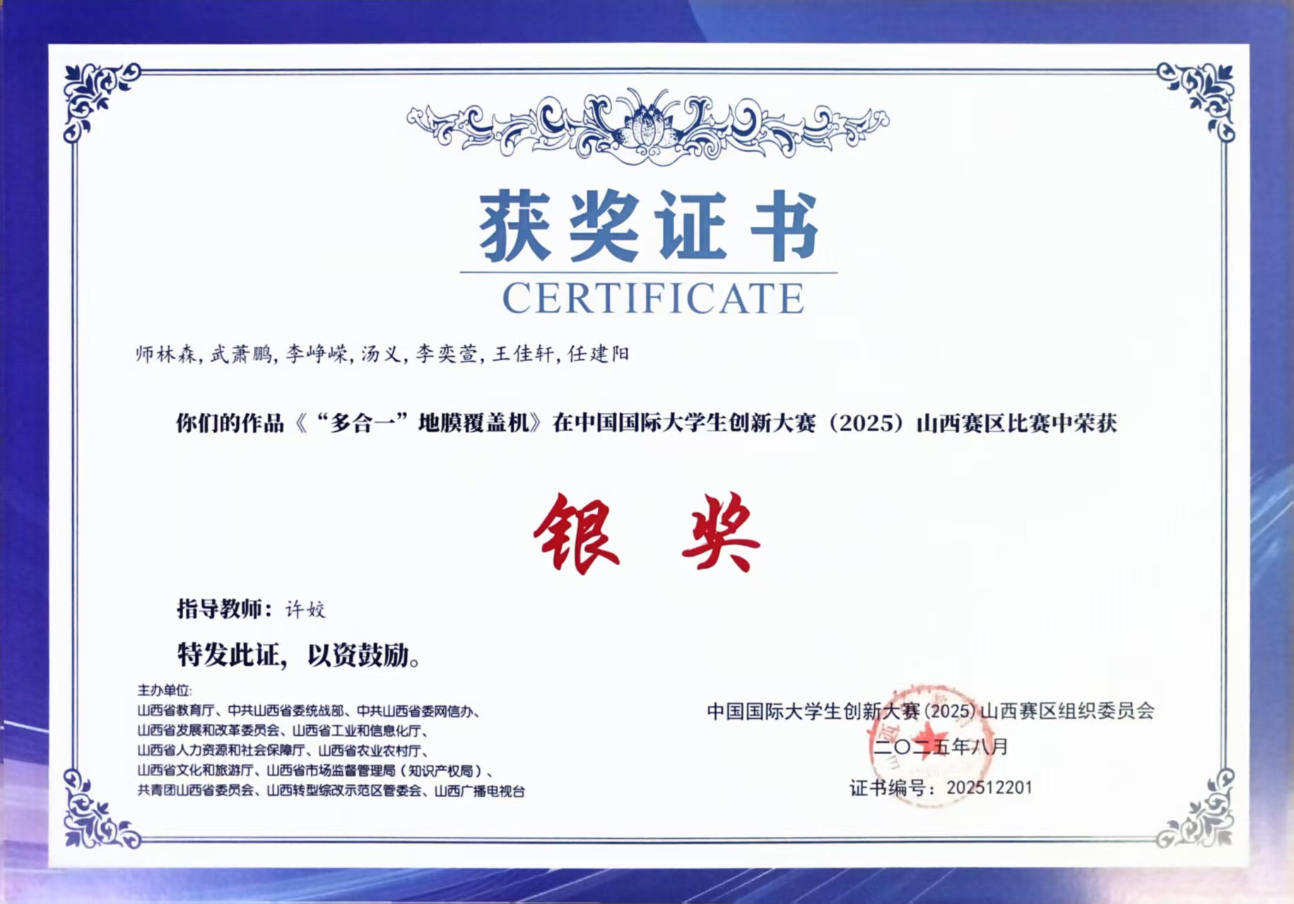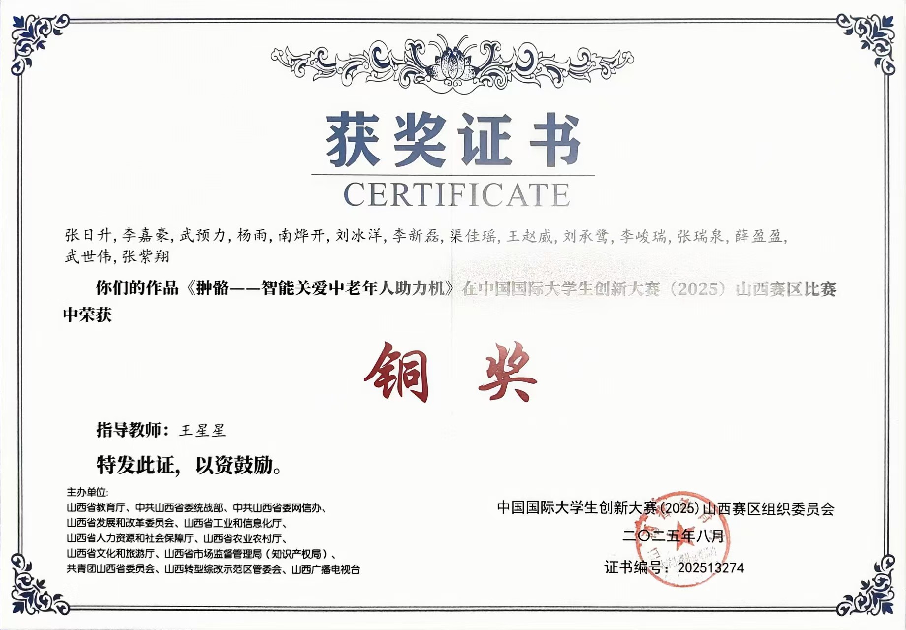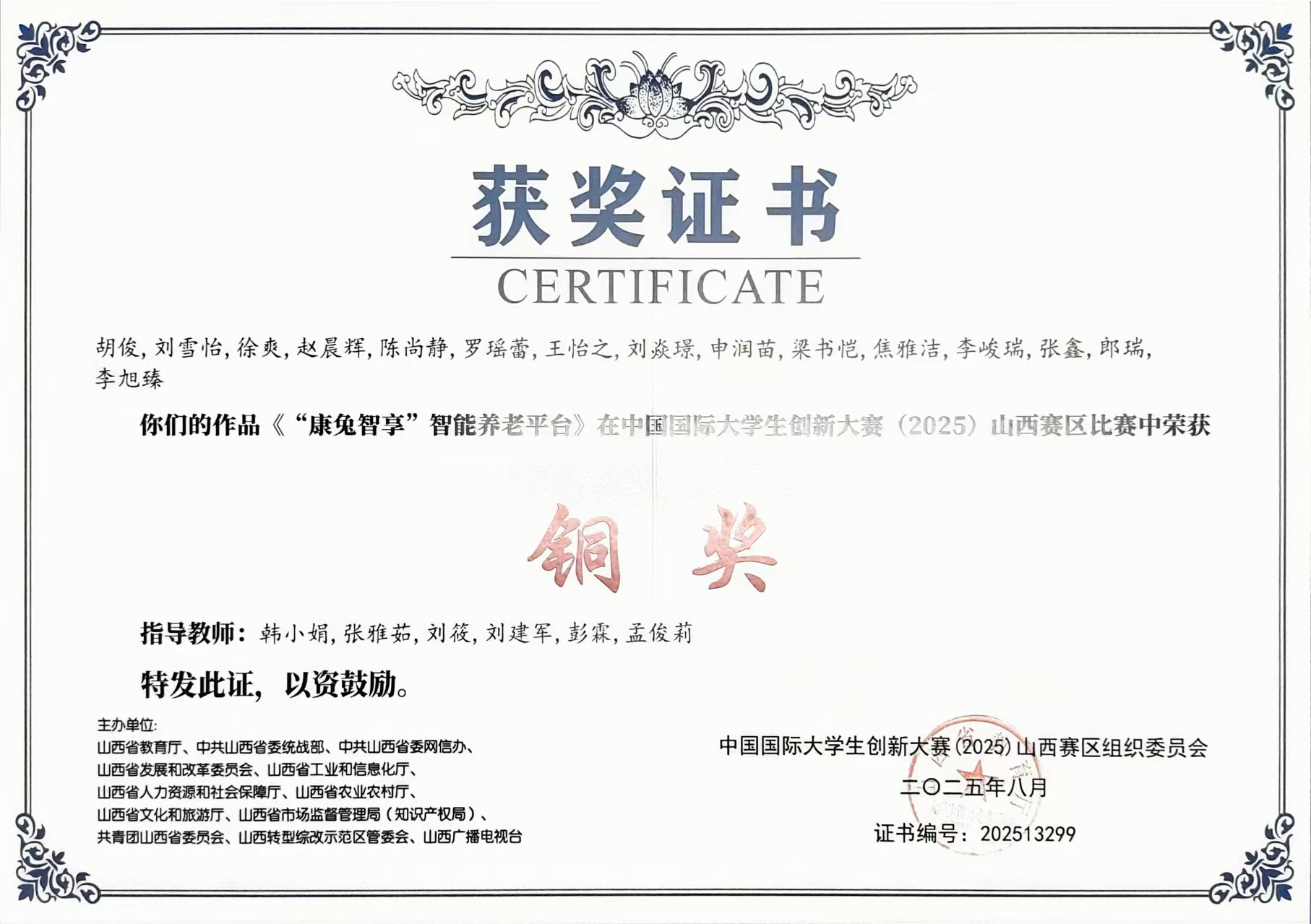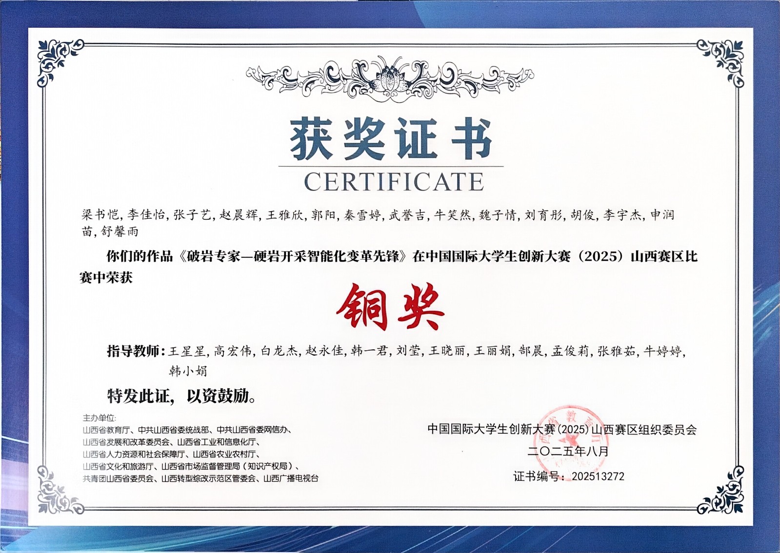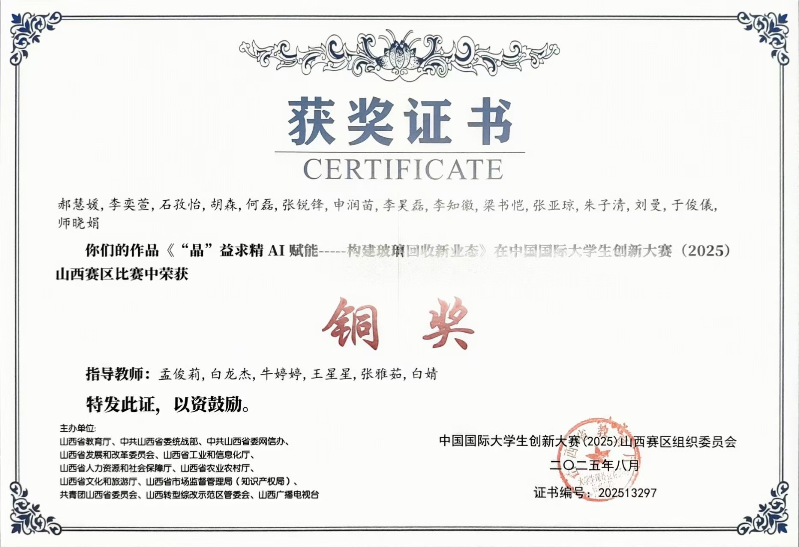 中国国际大学生创新大赛(2025)省赛获奖证书