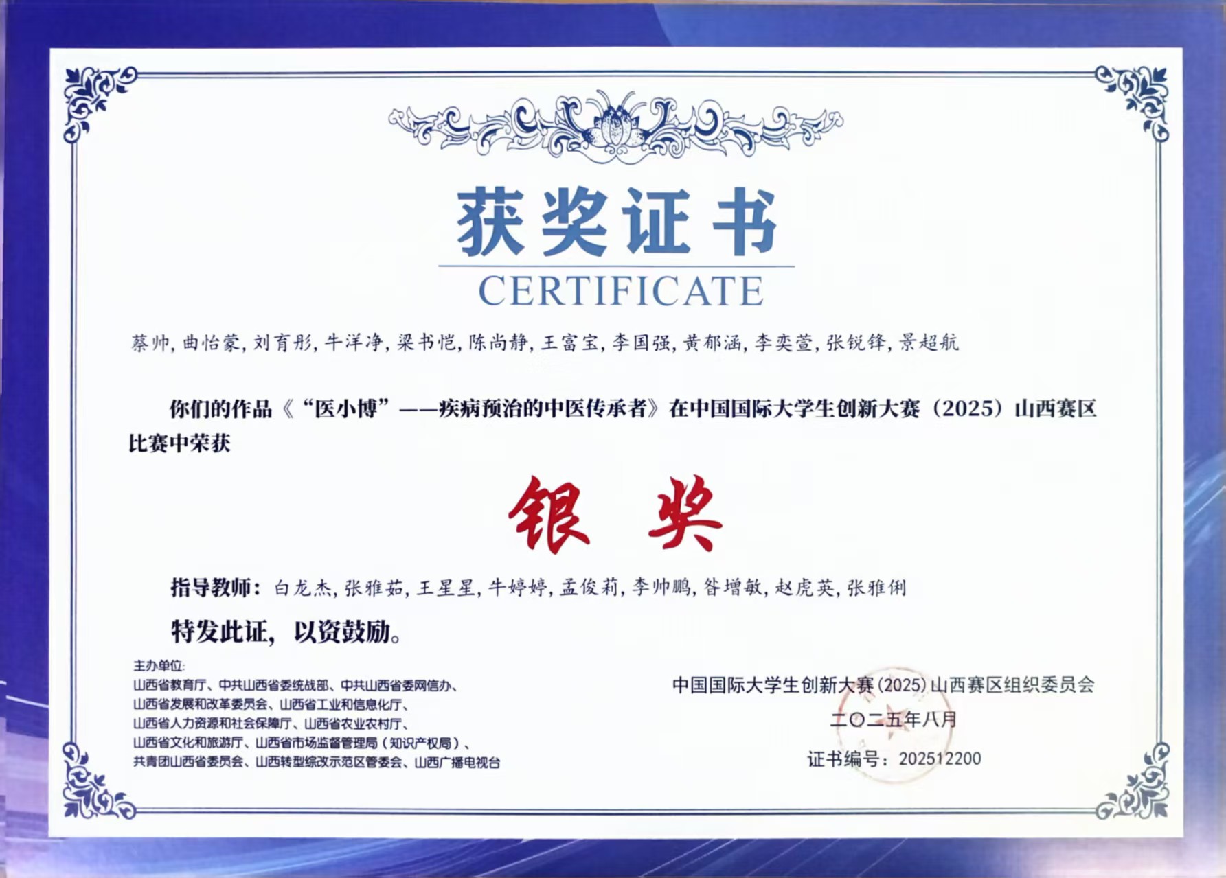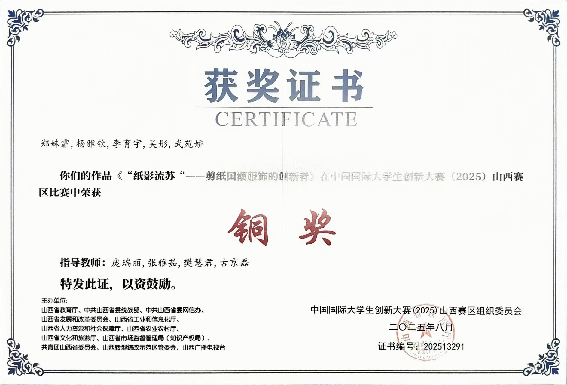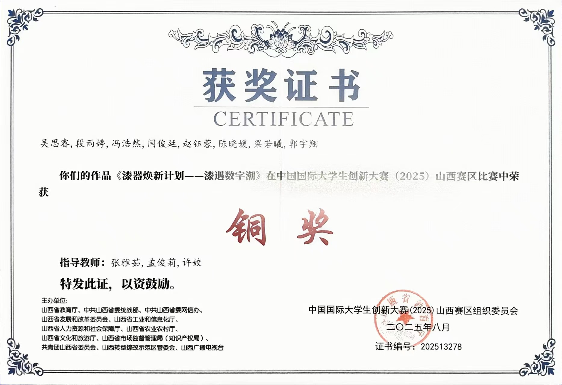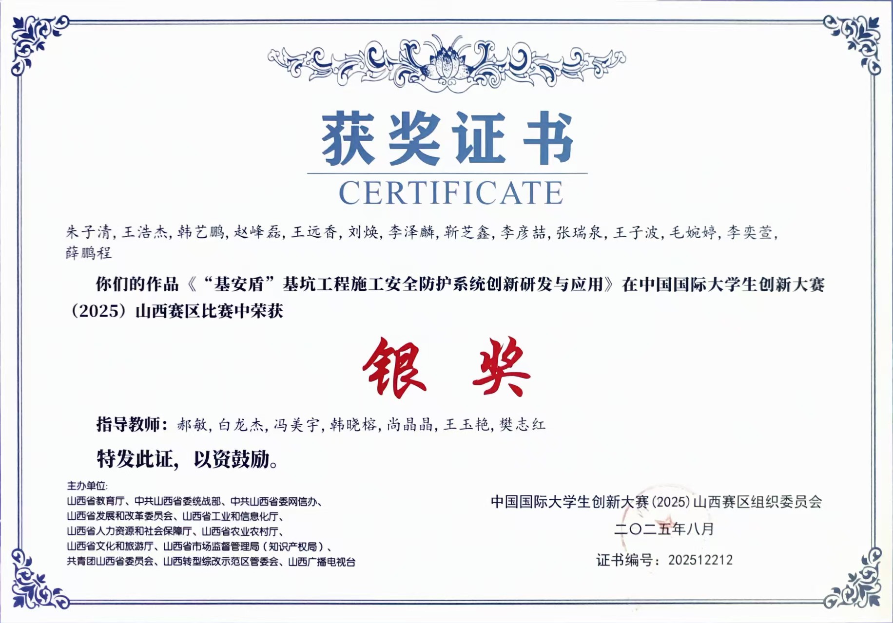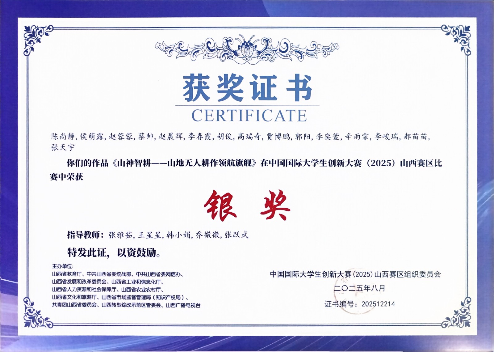 中国国际大学生创新大赛(2025)省赛获奖证书