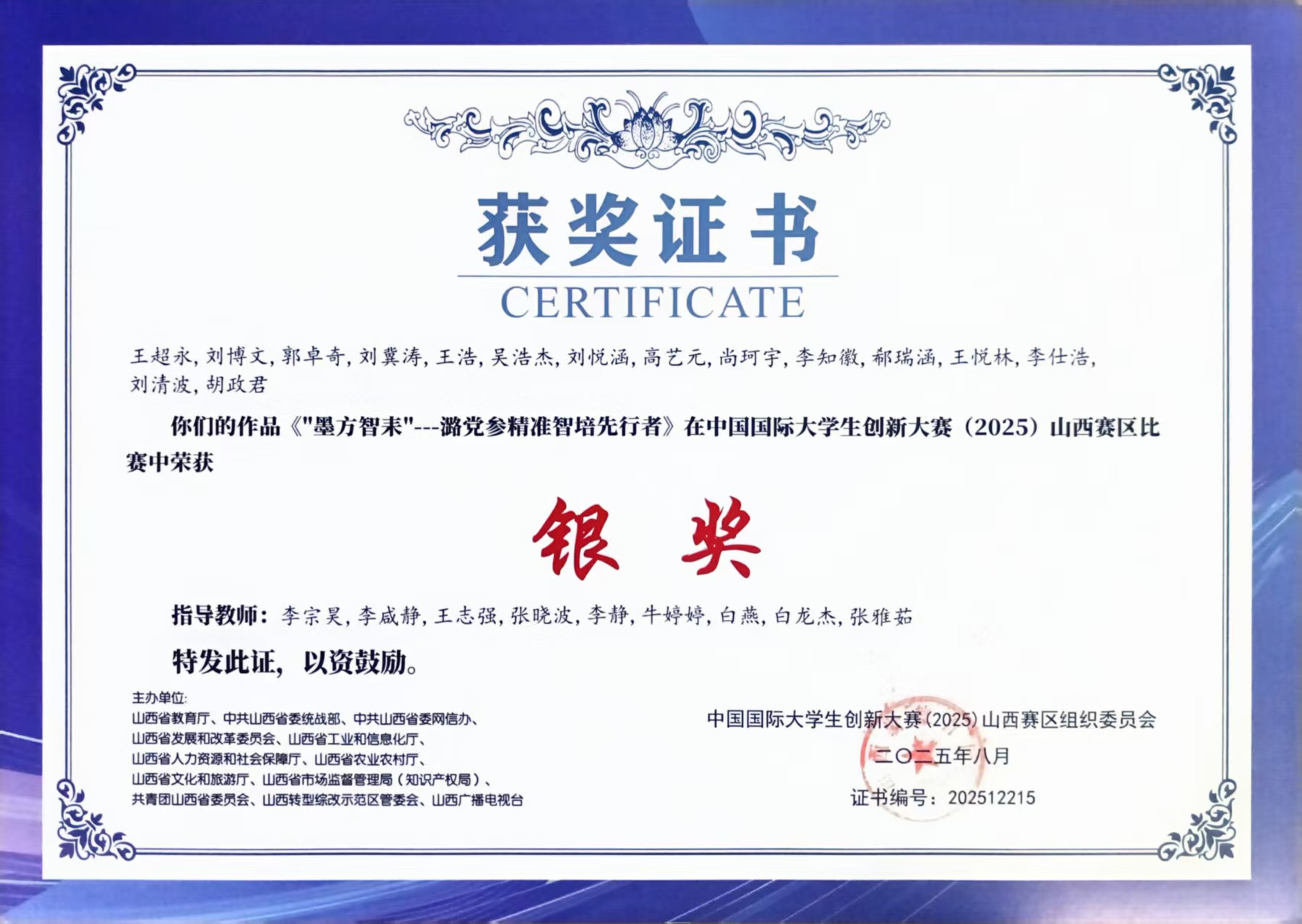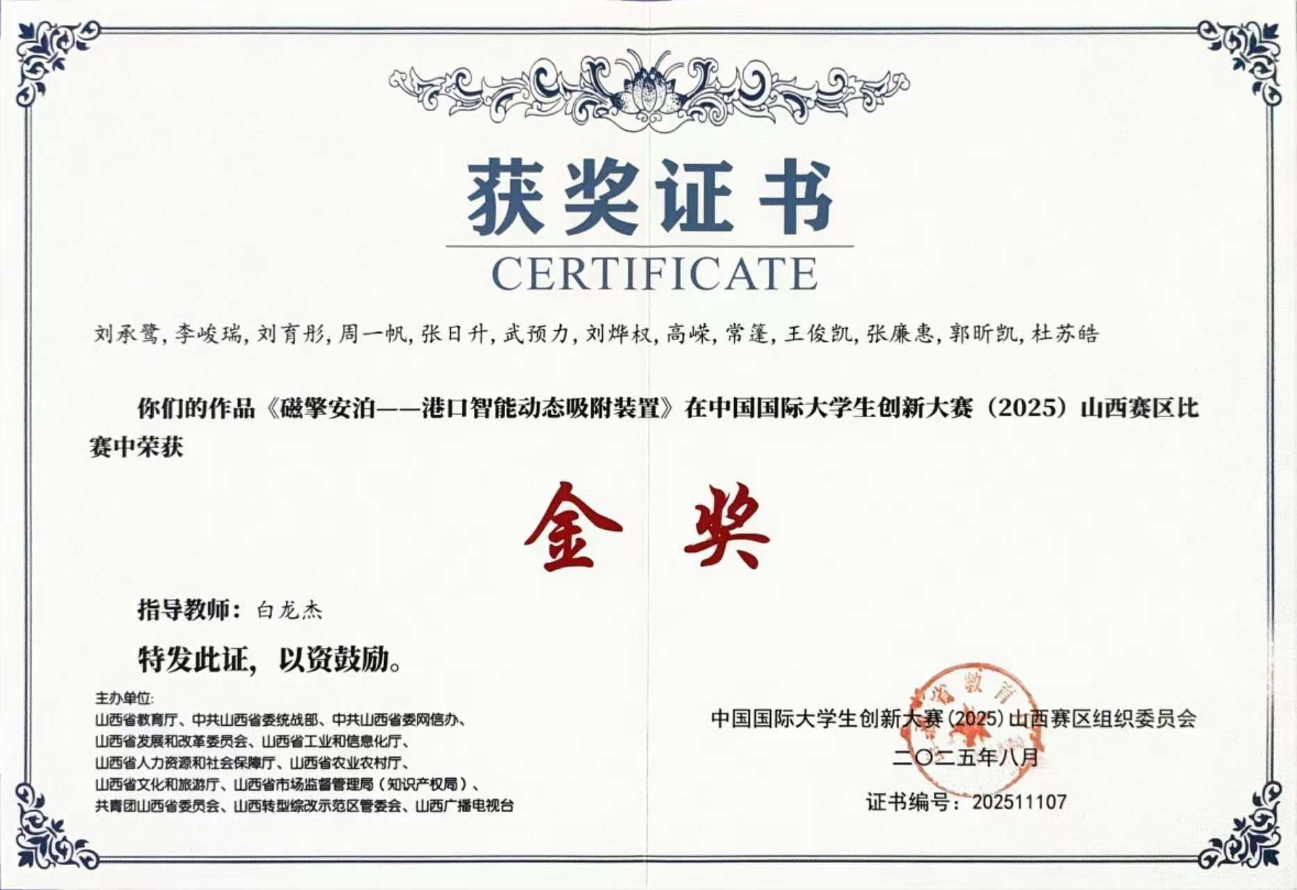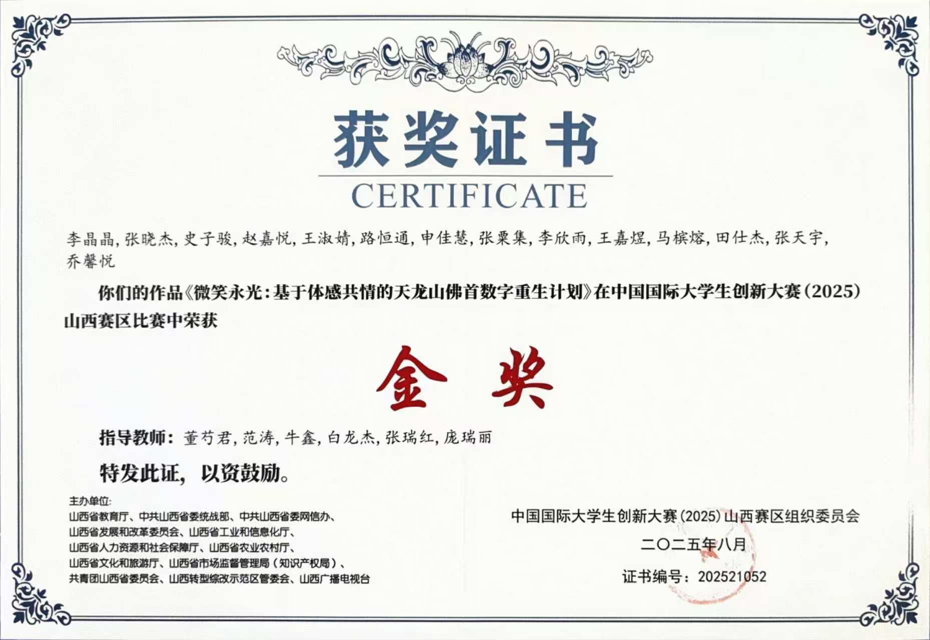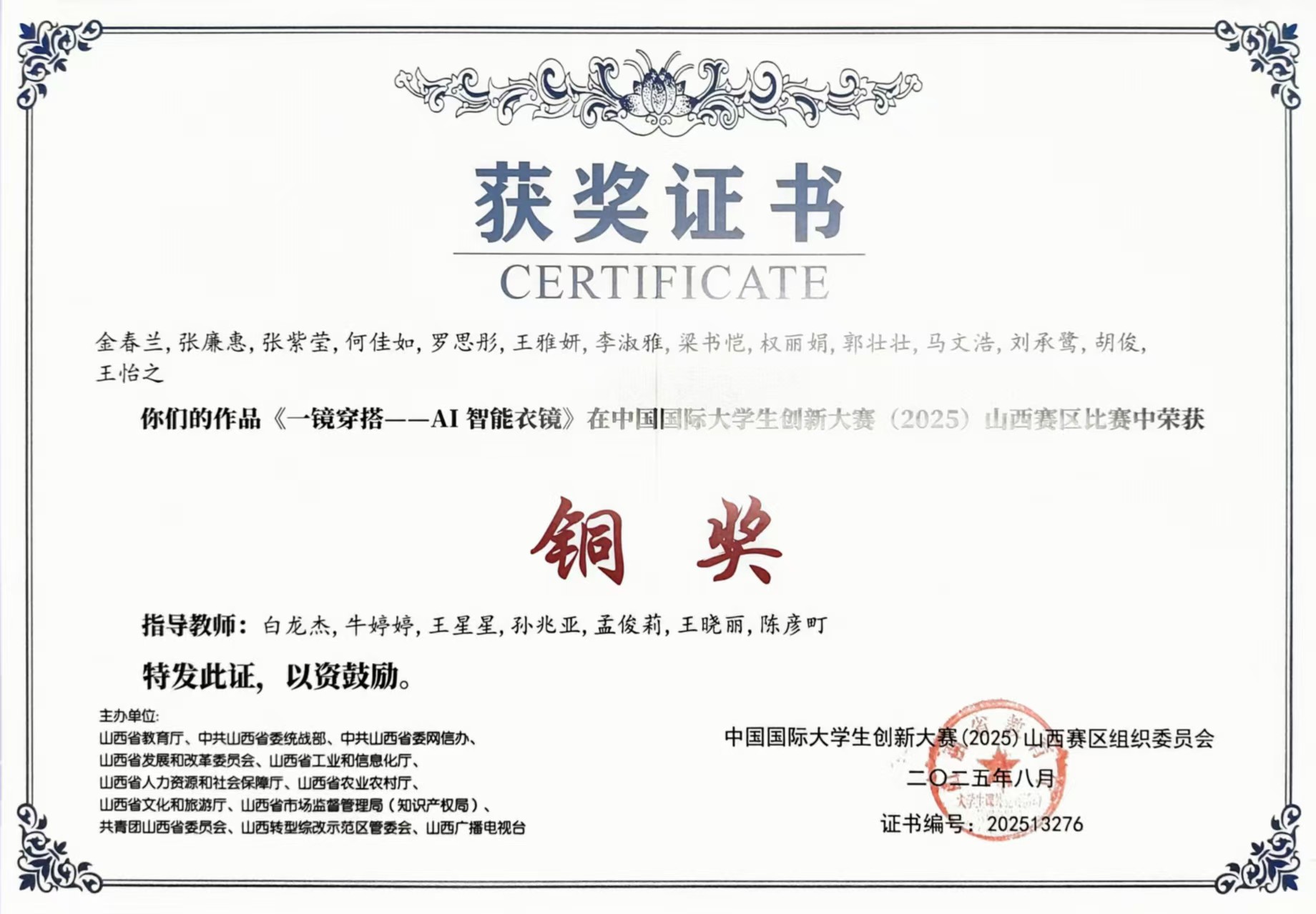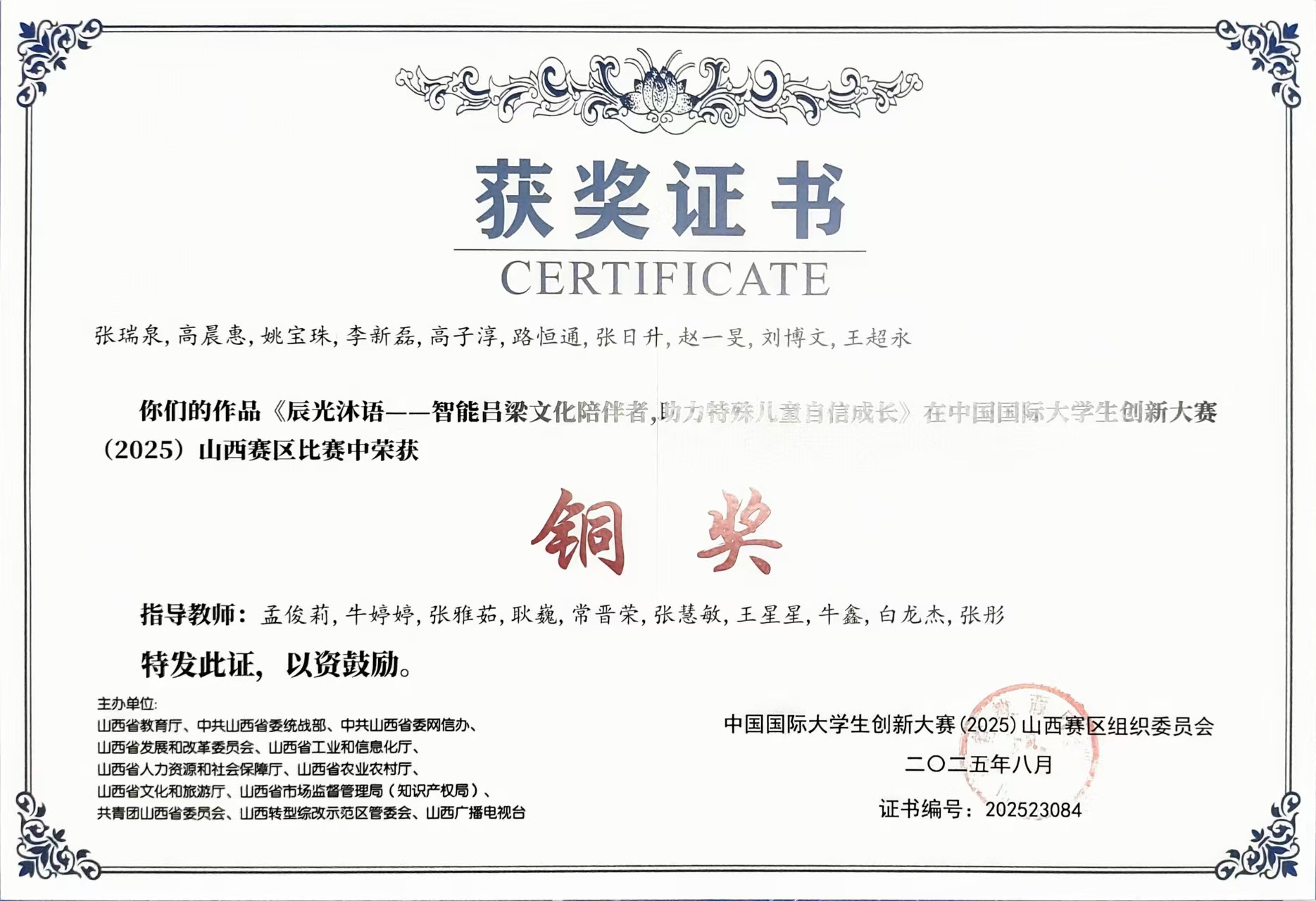 中国国际大学生创新大赛(2025)省赛获奖证书