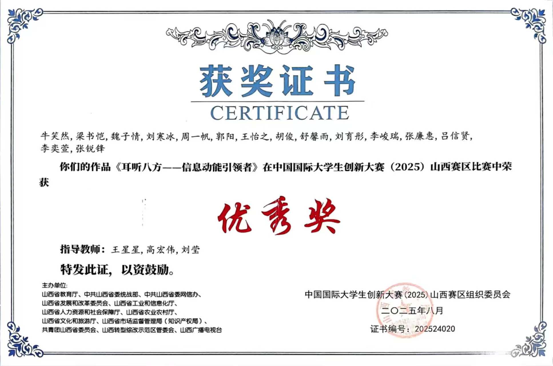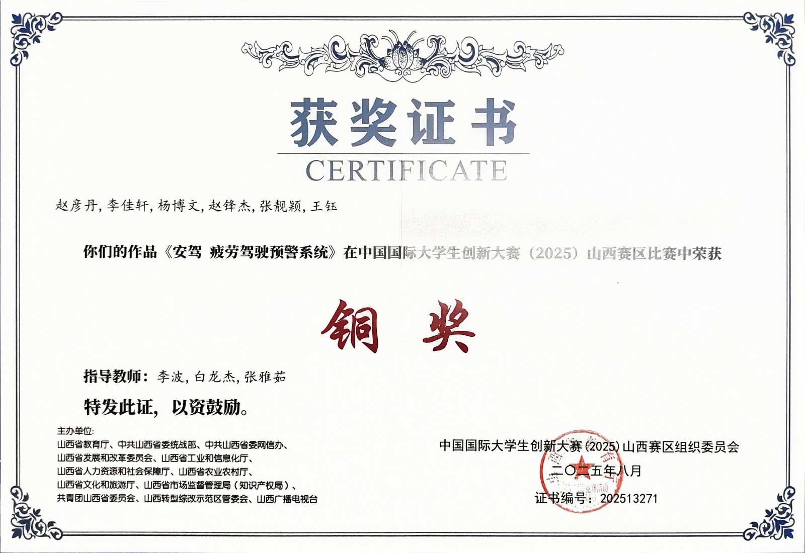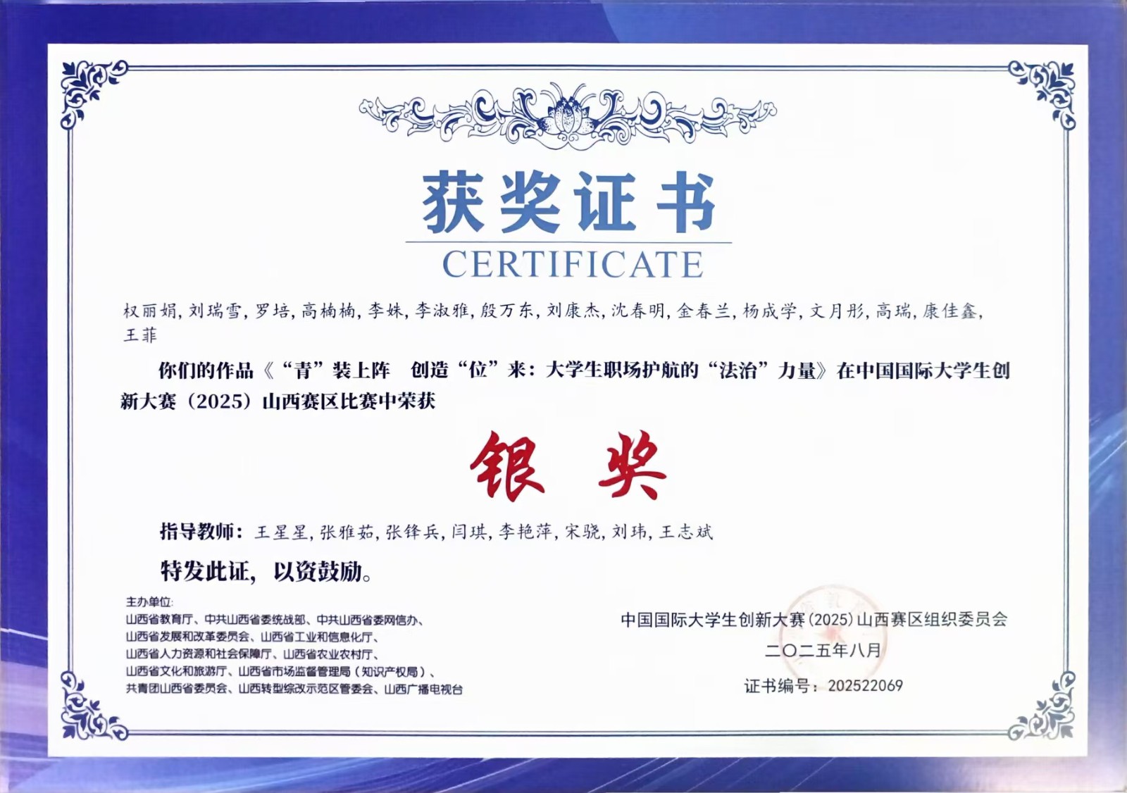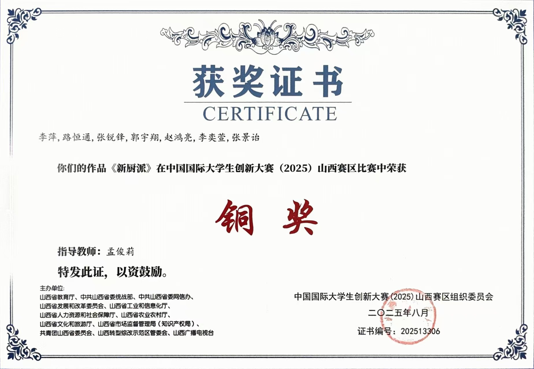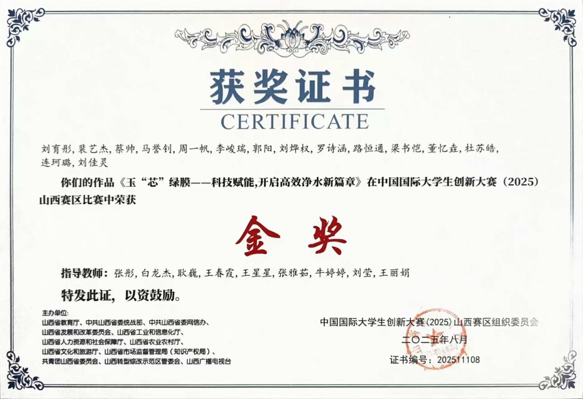 中国国际大学生创新大赛(2025)省赛获奖证书